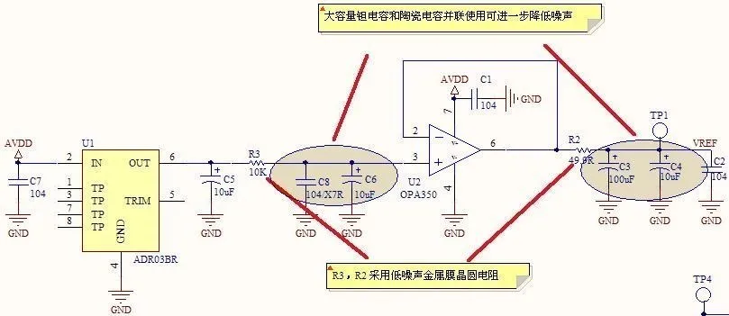 6.ADR03 2.Referencia de voltaje de 5V, OPA350 0.El circuito de filtro de paso bajo de 1 Hz ~ 10 Hz se compone de memoria de caché, condensadores de tantalio de gran capacidad y condensadores cerámicos en paralelo con obleas y resistencia de película metálica de bajo ruido, que suprime eficazmente el ruido de baja frecuencia.