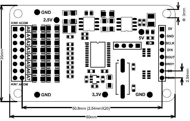 1.ADC A0-A7, 8 canales de entrada se pueden configurar fácilmente para entradas diferenciales y de un solo extremo.
