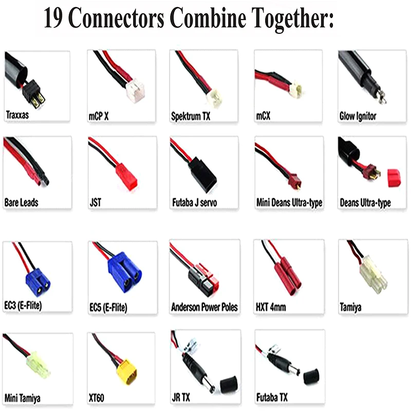 Saved you time and money when you are paying attention on what connectors you are getting for your batteries. Suitable for aircraft drone model RC cars trucks planes axis aerial device battery and airsoft.