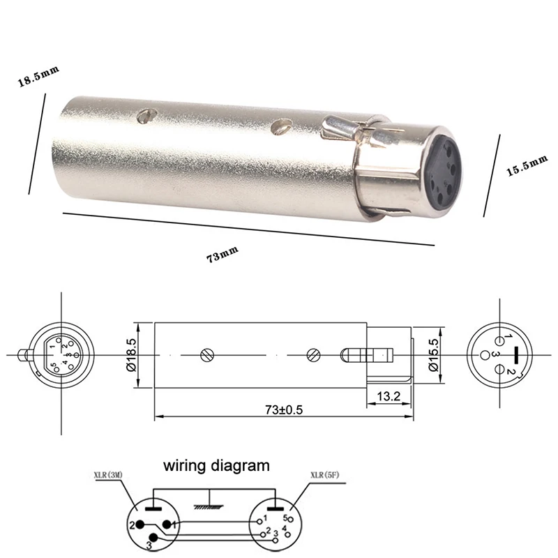 1 Uds XLR 3 pines macho a 5 pines DMX hembra convertidor con carcasa de Metal adaptador de Audio para convertidor de Cable de luz de escenario conector de Audio de micrófono