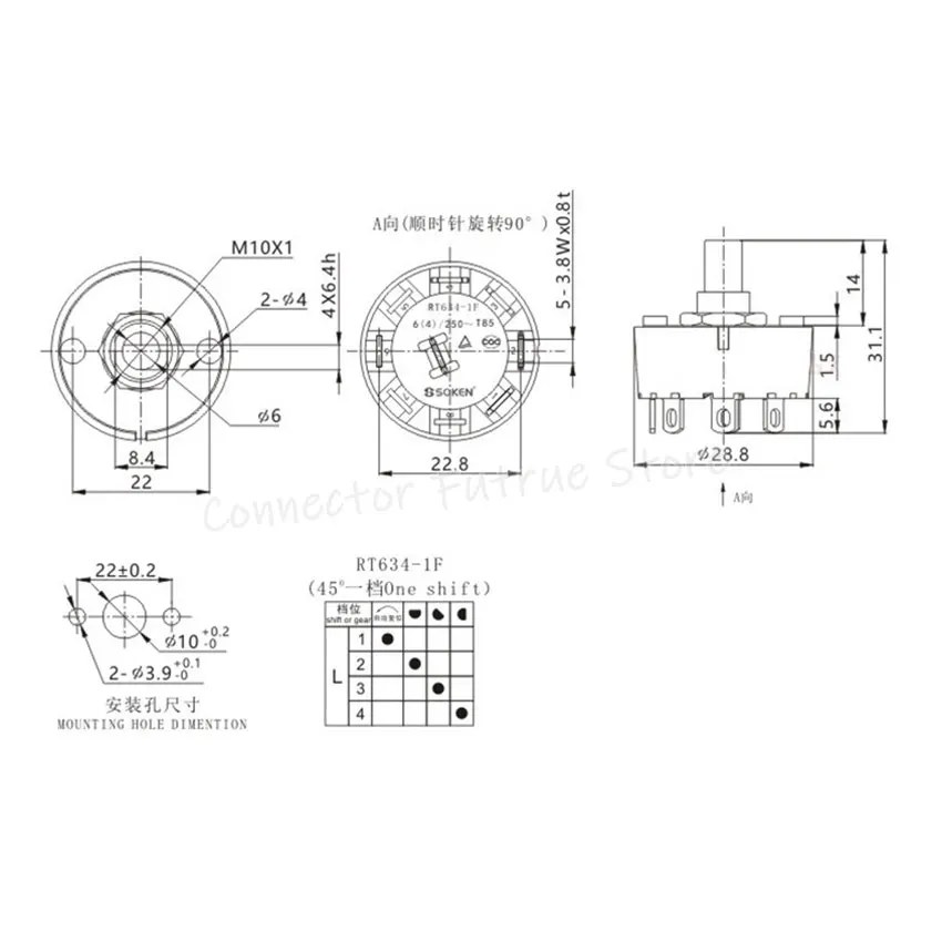 1 Uds. Aparato eléctrico rotatorio multiposicional para licuadora Heaterd interruptor de engranaje giratorio 2 3 4 6 7 8 interruptor de perilla de banda de 10 pines