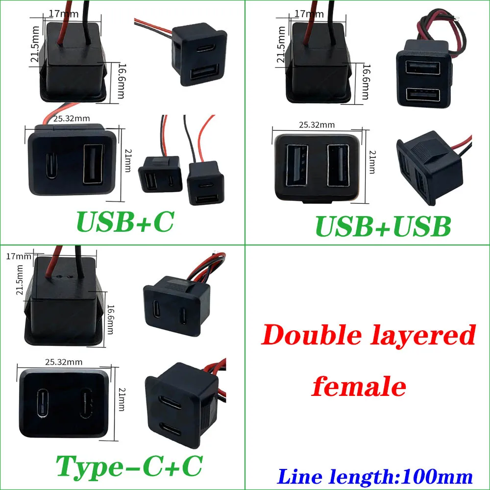 Comprar 1 Uds. Base hembra USB de doble capa tipo C enchufe y enchufe de carga de lámpara Usb hembra toma de corriente con conector de Cable