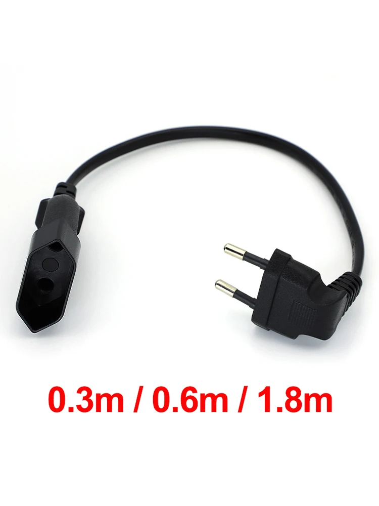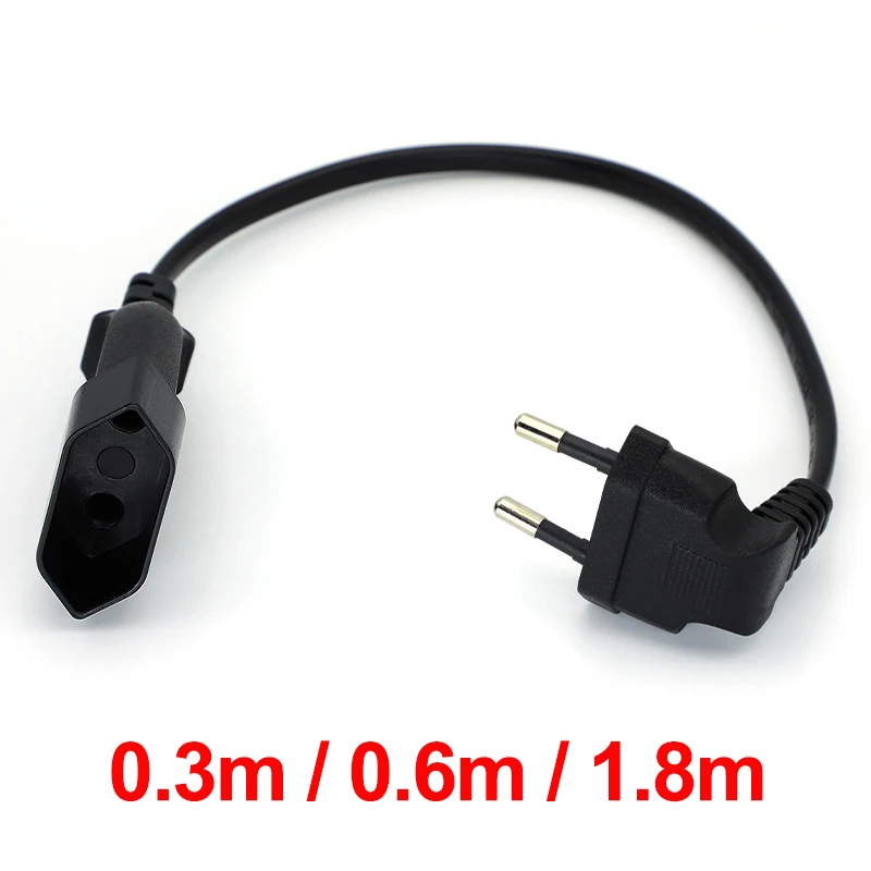 1 Uds. Cable adaptador de corriente de la UE, cable de alimentación de enchufe europeo redondo de 2 pines macho a hembra en ángulo de 90 grados para UPS PDU 0,3 M/0,6 M/1.8 M