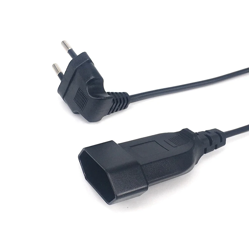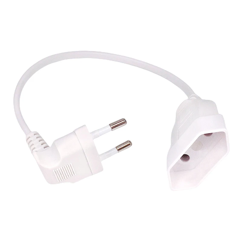 1PCS EU Power Adapter Cord,90 Degree Angled European Round 2Pin Male to Female Plug Power Cable For UPS PDU 0.3M/0.6M