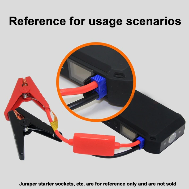 ▲Aplicable a: modelos de automóviles pequeños, compatible con la mayoría de los puentes de refuerzo de batería de salida macho EC5 de 12 V.▲Uso del arrancador de salto de coche: