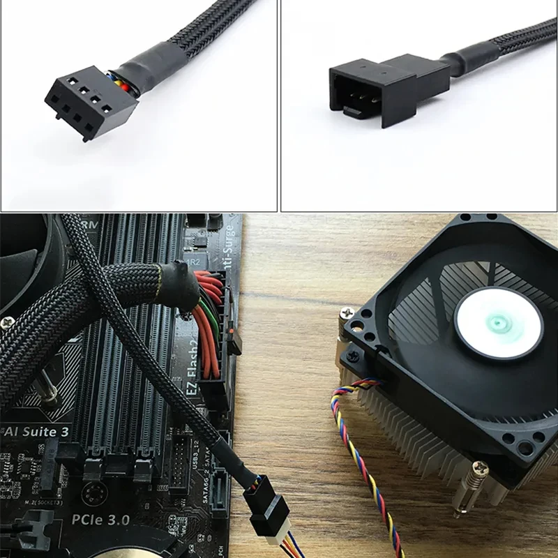 1 Uds. Cable de ventilador Pwm de 4 pines 1 a 2/3/4 vías divisor 27cm conector de Cable de extensión de funda negra Cables de extensión PWM