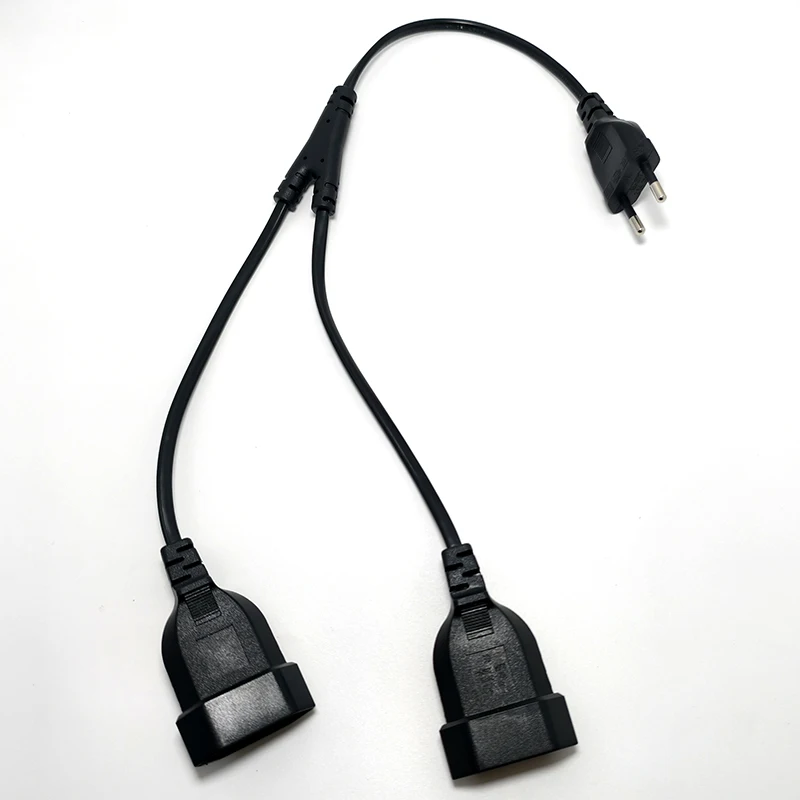 100% nuevo y de alta calidadConector hembra: Enchufe de salida CEE7/16Conector macho: Enchufe de entrada CEE7/16Longitud: 49 cm en total, 15 cm para la parte divisoraCorriente nominal: 2,5 A.Tensión nominal: 250 VColor negroCalibre de alambre: 2*0,75 mm cuadradosMaterial: VDE; cobre libre de oxígenoNúmero de conductores: 2 conductoresContenido del paquete1 Uds * cable de extensión