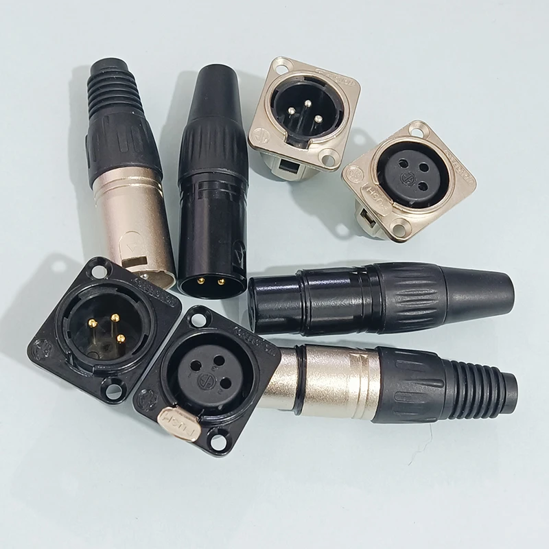 Conector de clavija de Cable de Audio macho/hembra de 3 pines, Terminación de Cable, micrófono negro y plateado, altavoz chapado en oro de cobre puro, 1 Uds.