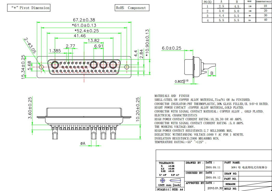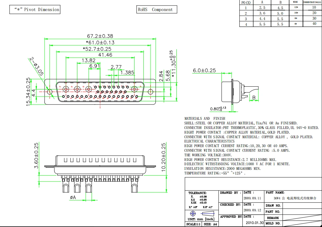 1 Uds 36W4 30A chapado en oro conector D-SUB macho de alta corriente adaptador tipo soldadura 32 + 4 enchufes jack alta potencia 36 posiciones