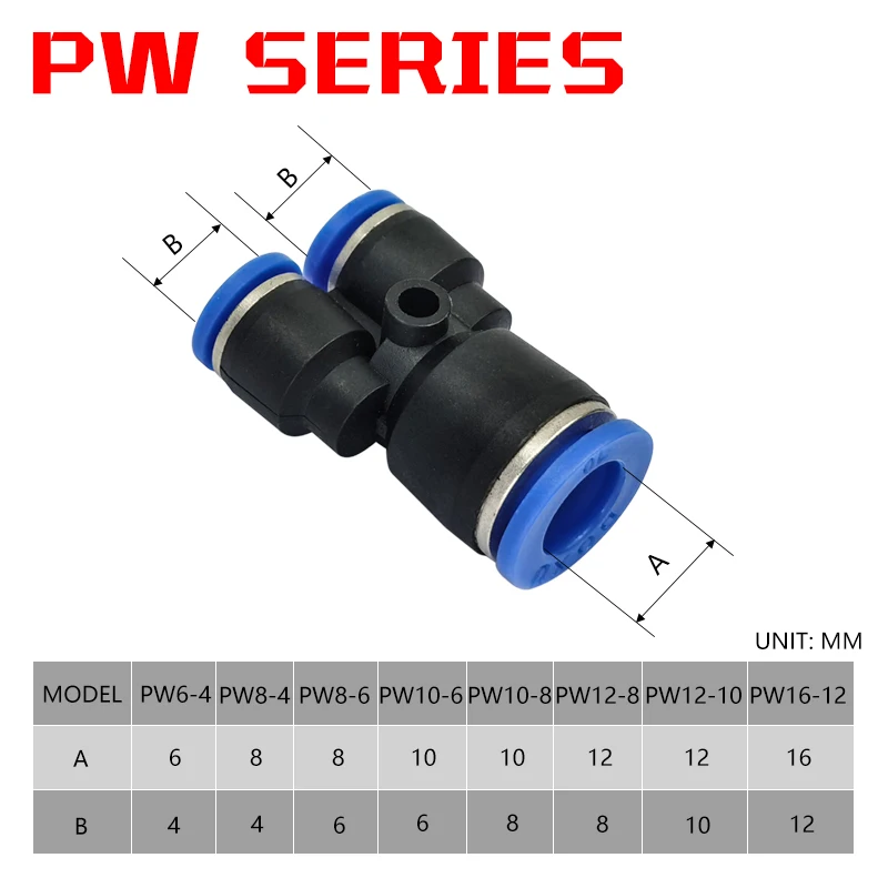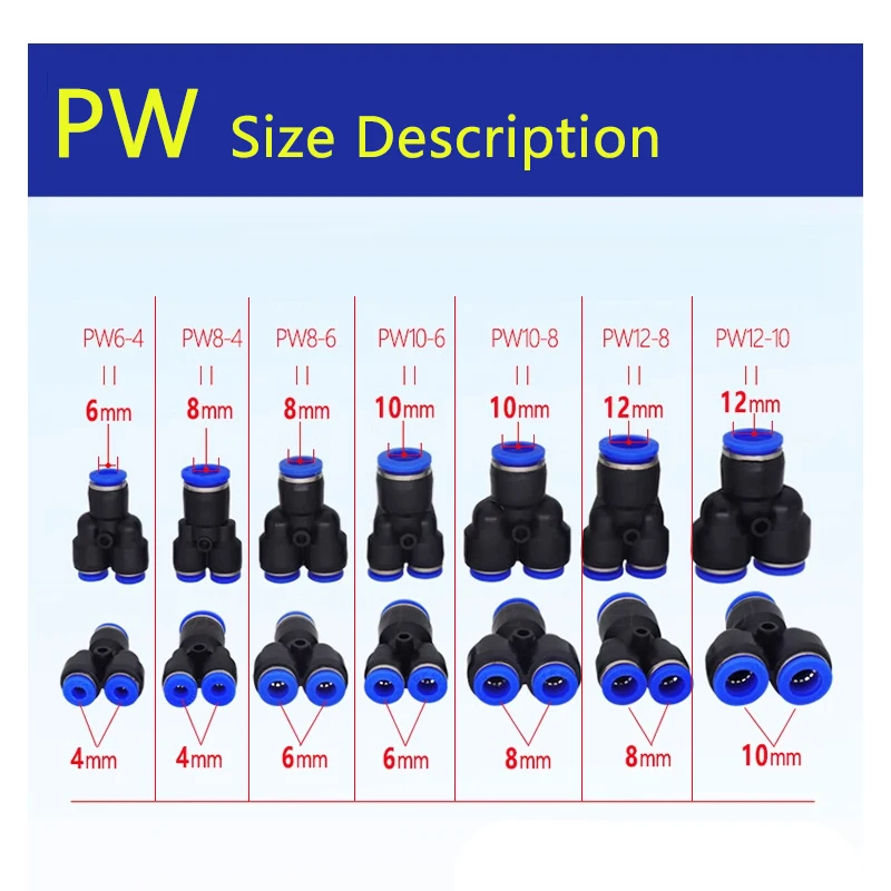 Comprar 1 Uds. Conector neumático tipo Y PW reductor en T recto a través de acoplamientos rápidos de manguera de plástico de 4 a 12mm