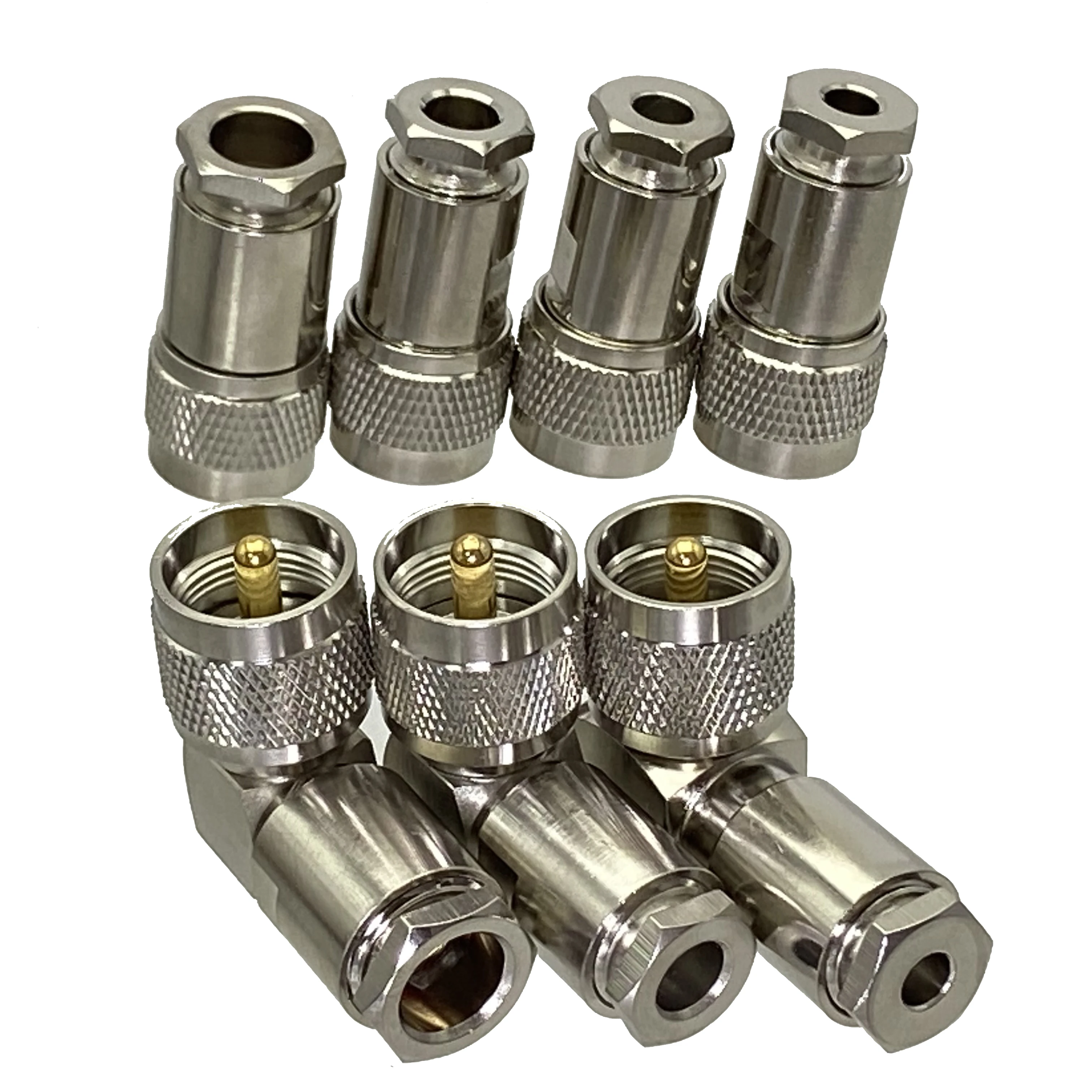 Comprar 1 Uds conector UHF PL259 abrazadera de enchufe macho RG58 RG142/RG8X/RG5 RG6/RG8 adaptador RF de ángulo recto y recto cable Coaxial