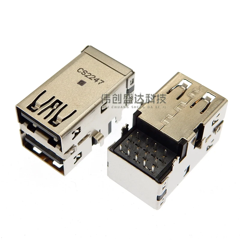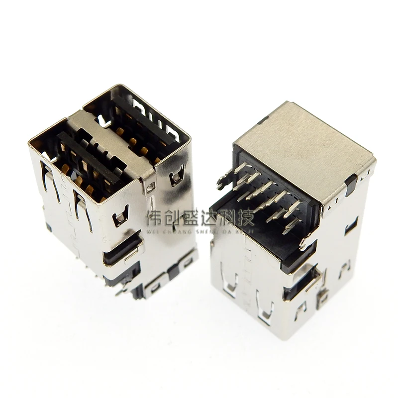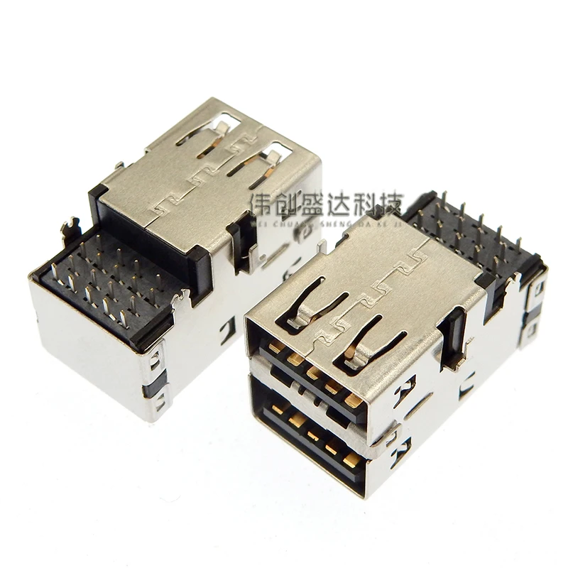 Comprar 1 Uds. Conector USB 3,0 de doble capa tipo A placa de fregadero AF hembra de doble capa puerto USB de ordenador de escritorio de 90 grados