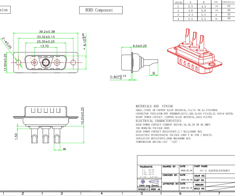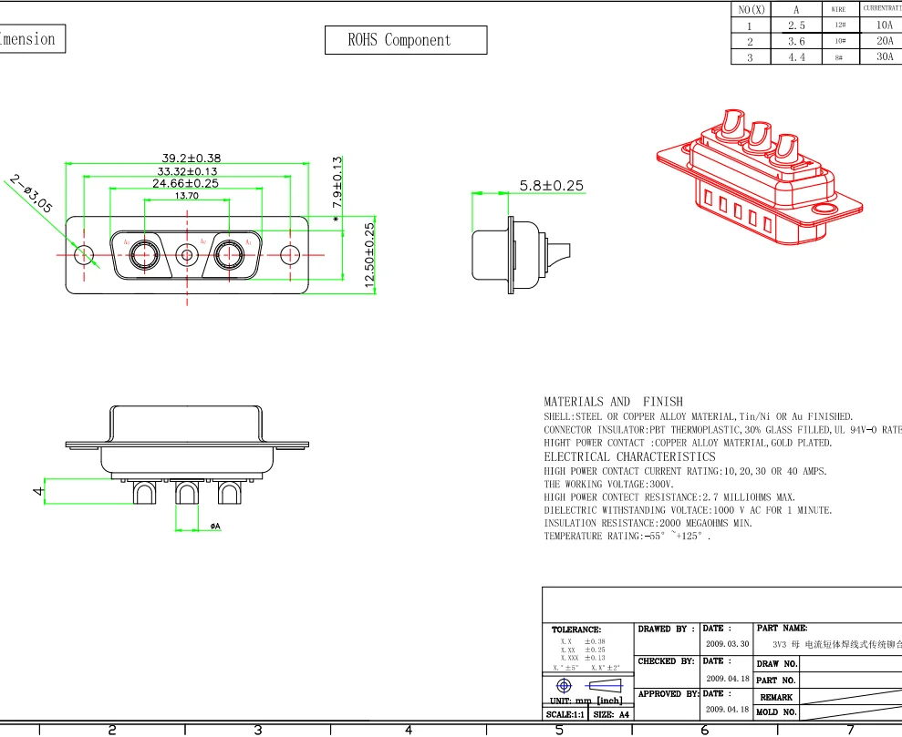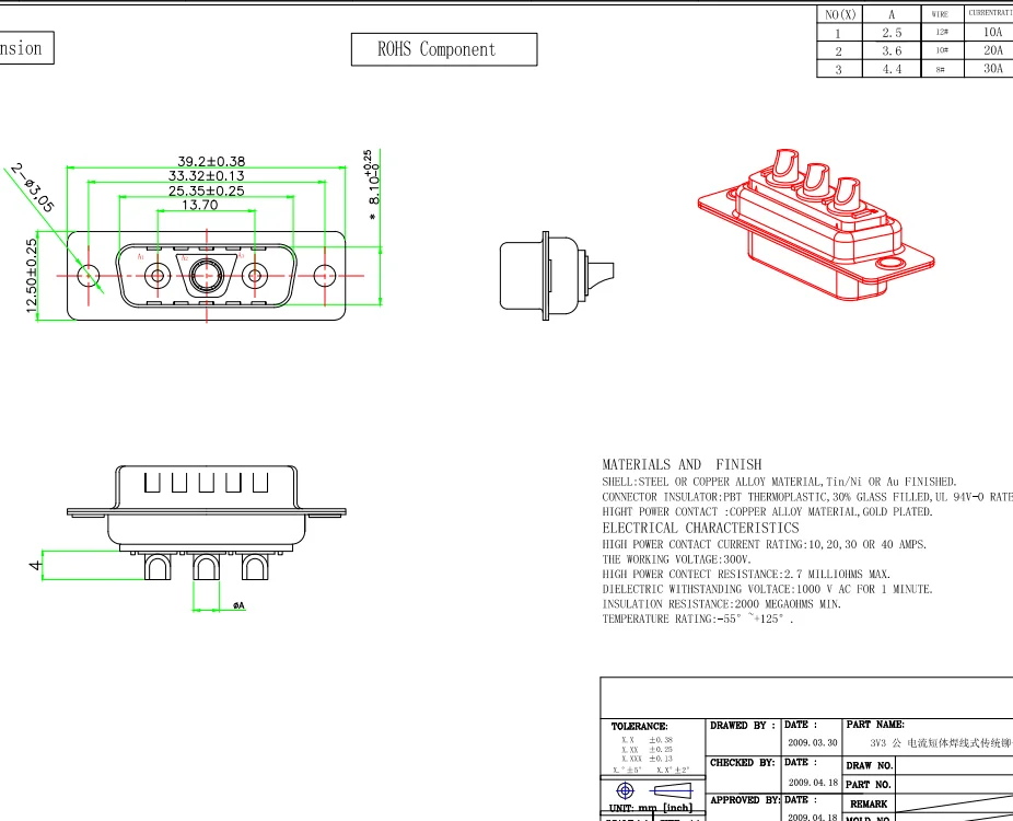 1 Uds DB3 de alta potencia 3V3 30A chapado en oro conector D-SUB macho hembra de alta corriente adaptador tipo soldadura enchufe de 3 pines soldadura