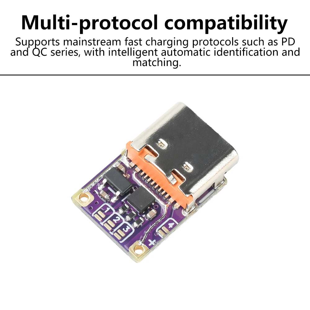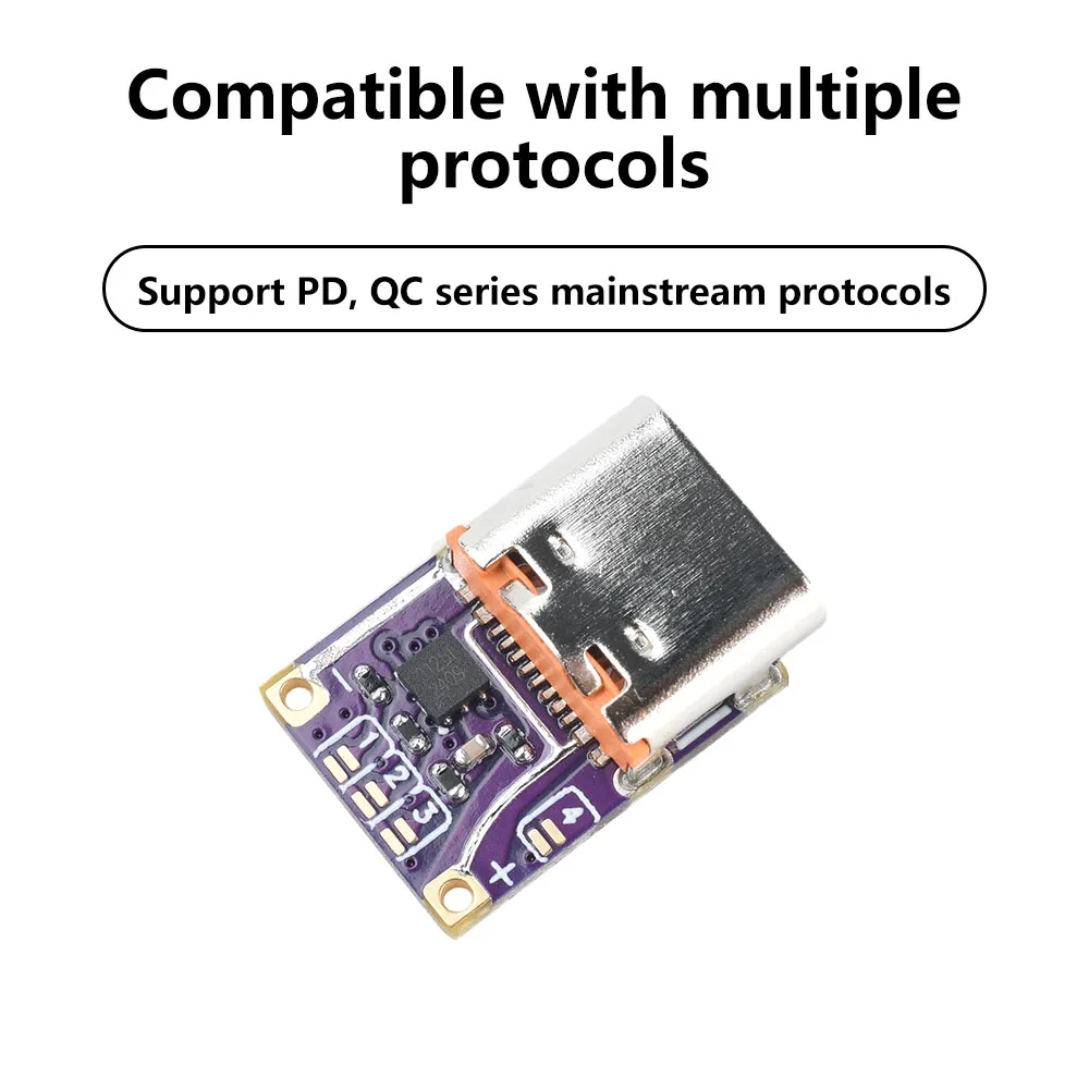 It adheres to protocol priority, automatically establishes a connection with the charger, and outputs the pre-set voltage. The decoder output cannot directly charge a phone. Please confirm that the output voltage matches the charging device's voltage requirements before charging.