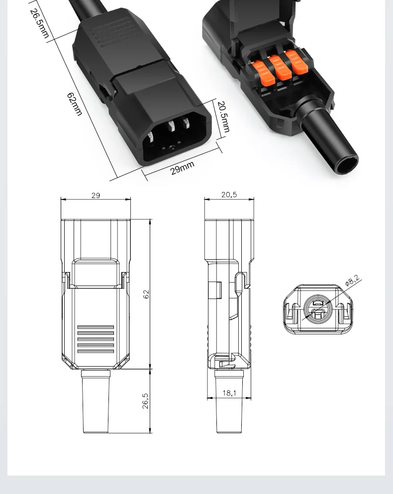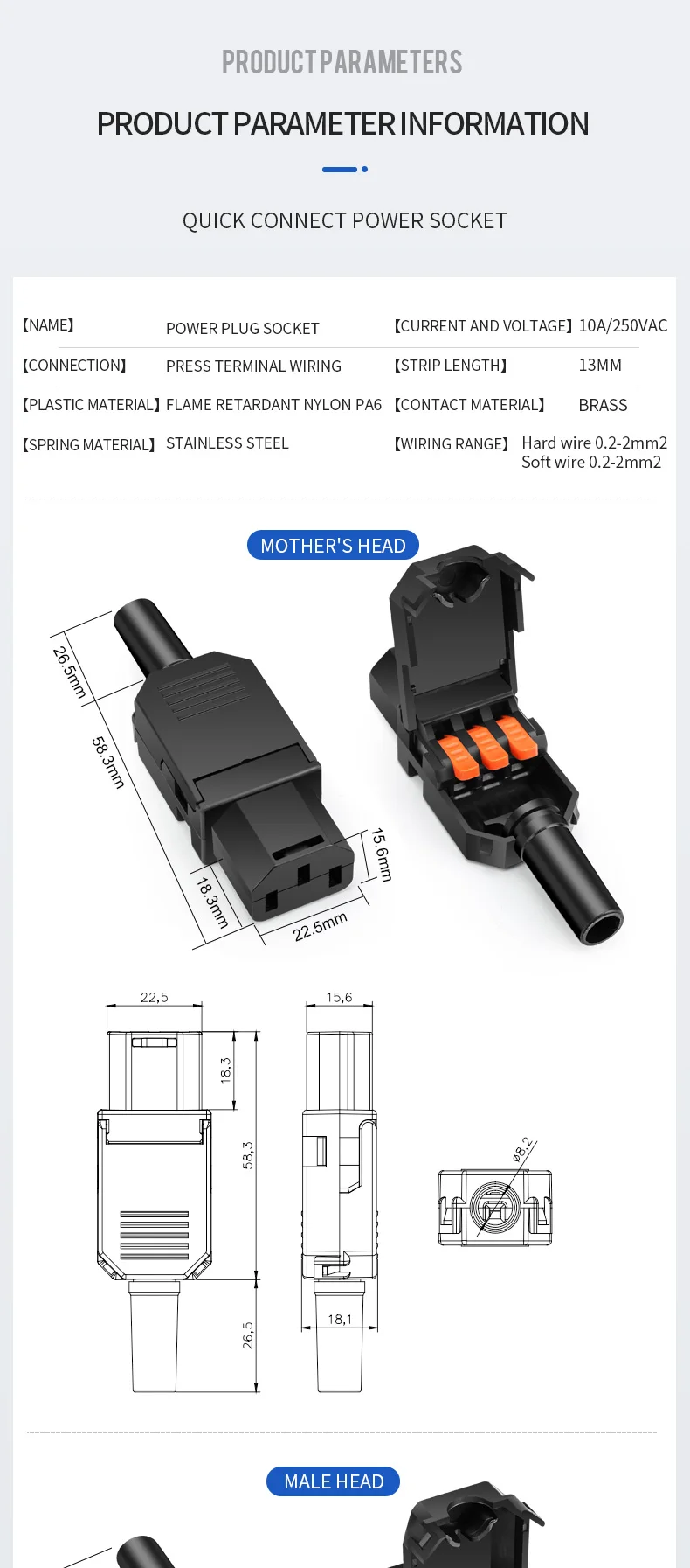 Comprar 1 Uds. Enchufe de 10A para olla arrocera, cableado rápido sin tornillo, toma de corriente CA, cableado eléctrico para olla arrocera PDU
