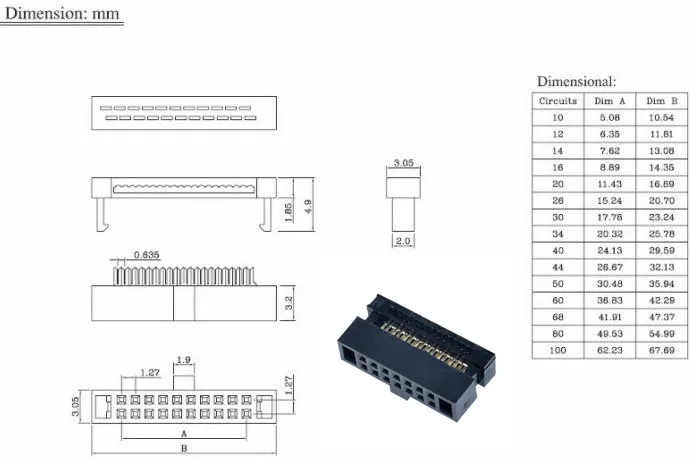 Número de pin: 6/810/12/14/16/20/24/26/30/34/40P