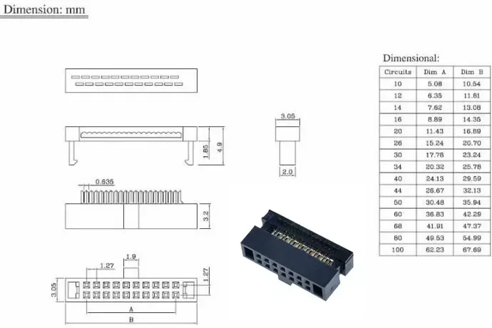 Número de pin: 6/810/12/14/16/20/24/26/30/34/40/50 pines