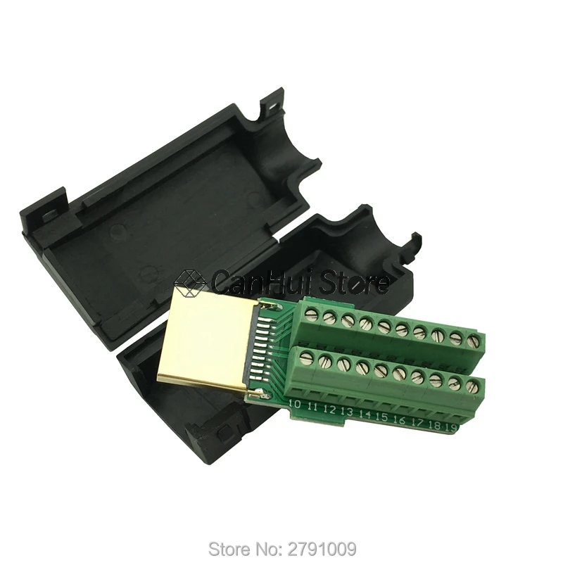 1 Uds HDMI macho 19P enchufe terminales de ruptura conector sin soldadura con cubierta negra