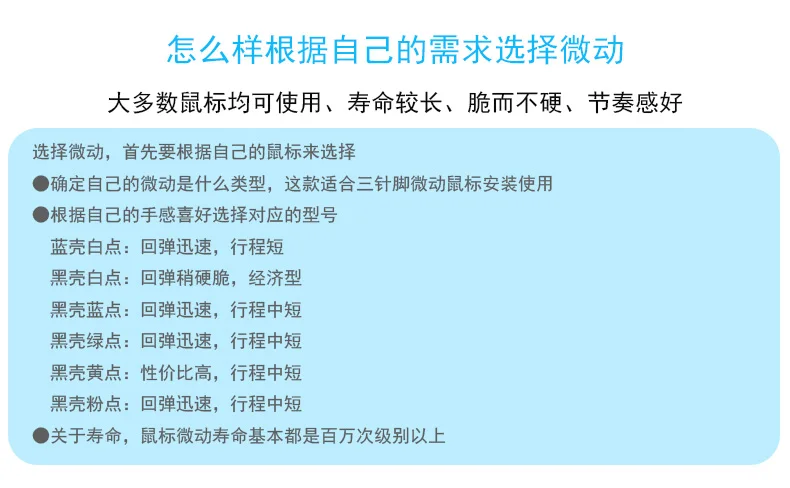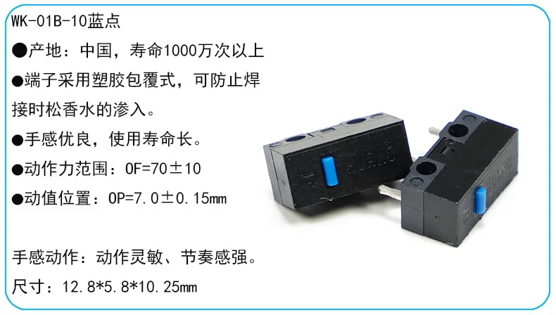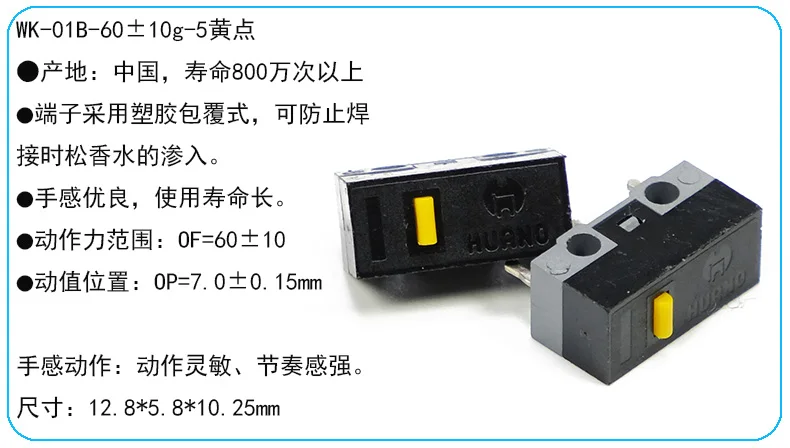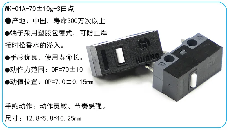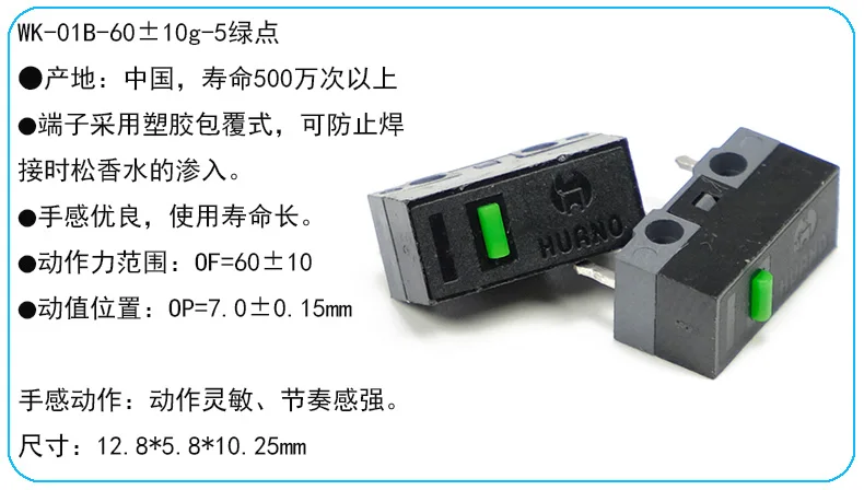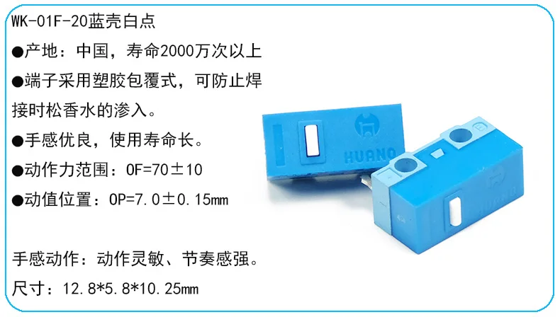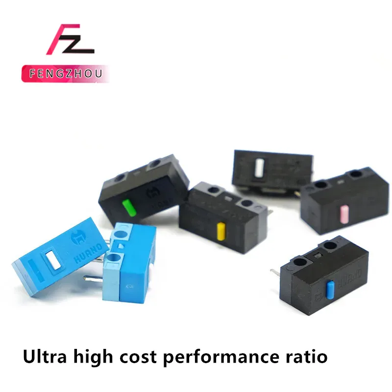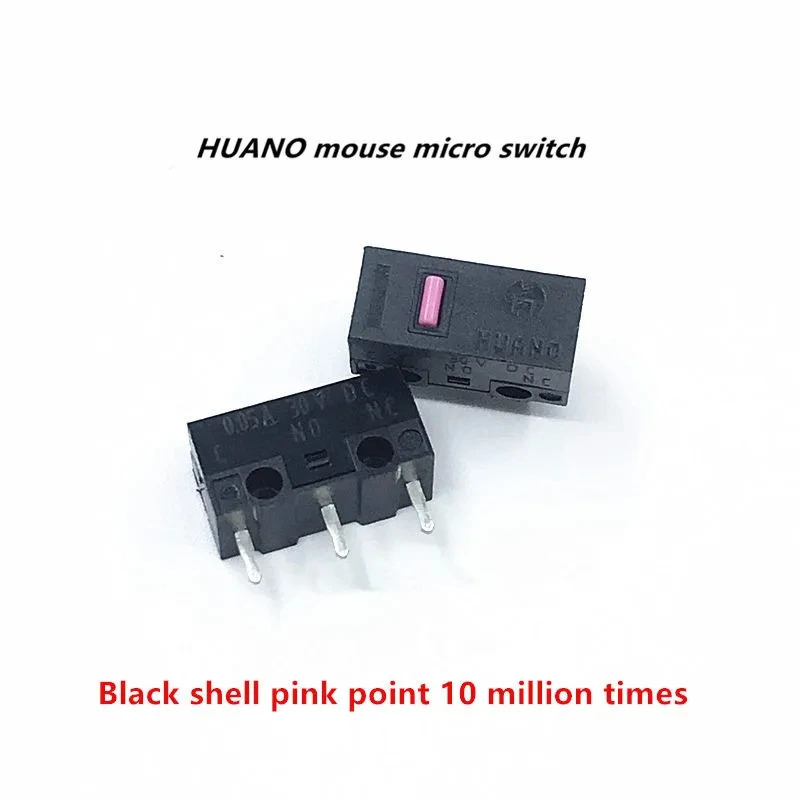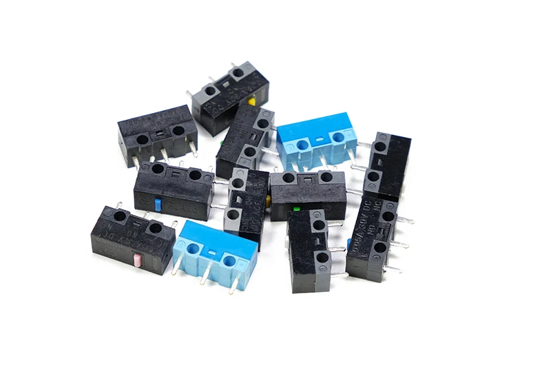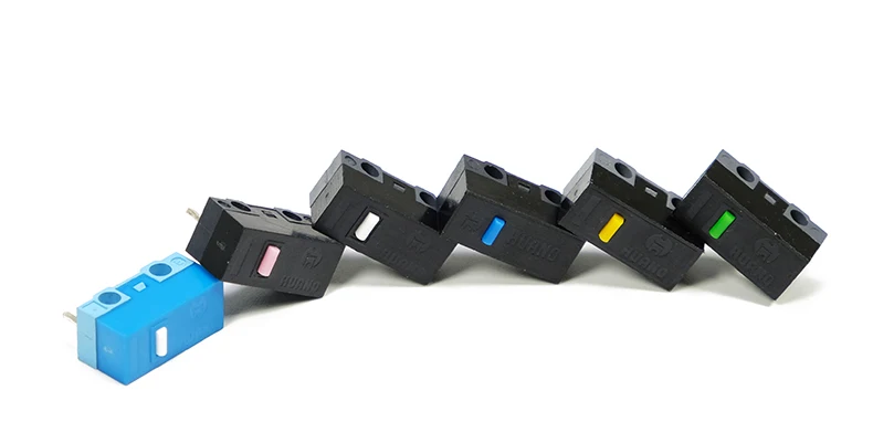 Comprar 1 Uds HUANO mouse micro interruptor botón blanco amarillo azul rosa punto verde carcasa azul punto blanco interruptor General de 3 pines
