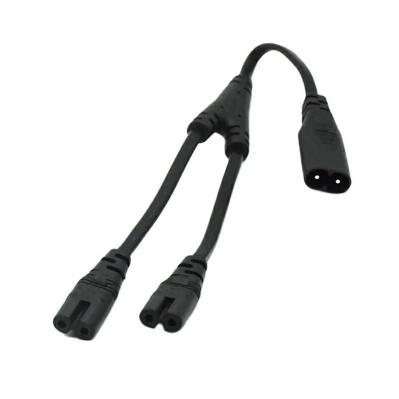 Comprar 1 Uds IEC 320 C8 2 pines macho a 2 x C7 hembra Y Cable de alimentación dividido aproximadamente 28CM IEC 320 C7 a C8 cables de extensión C8 macho a C7 hembra