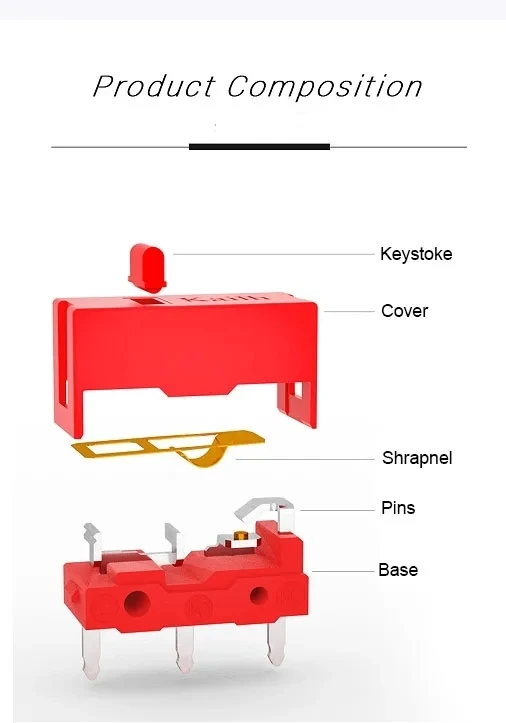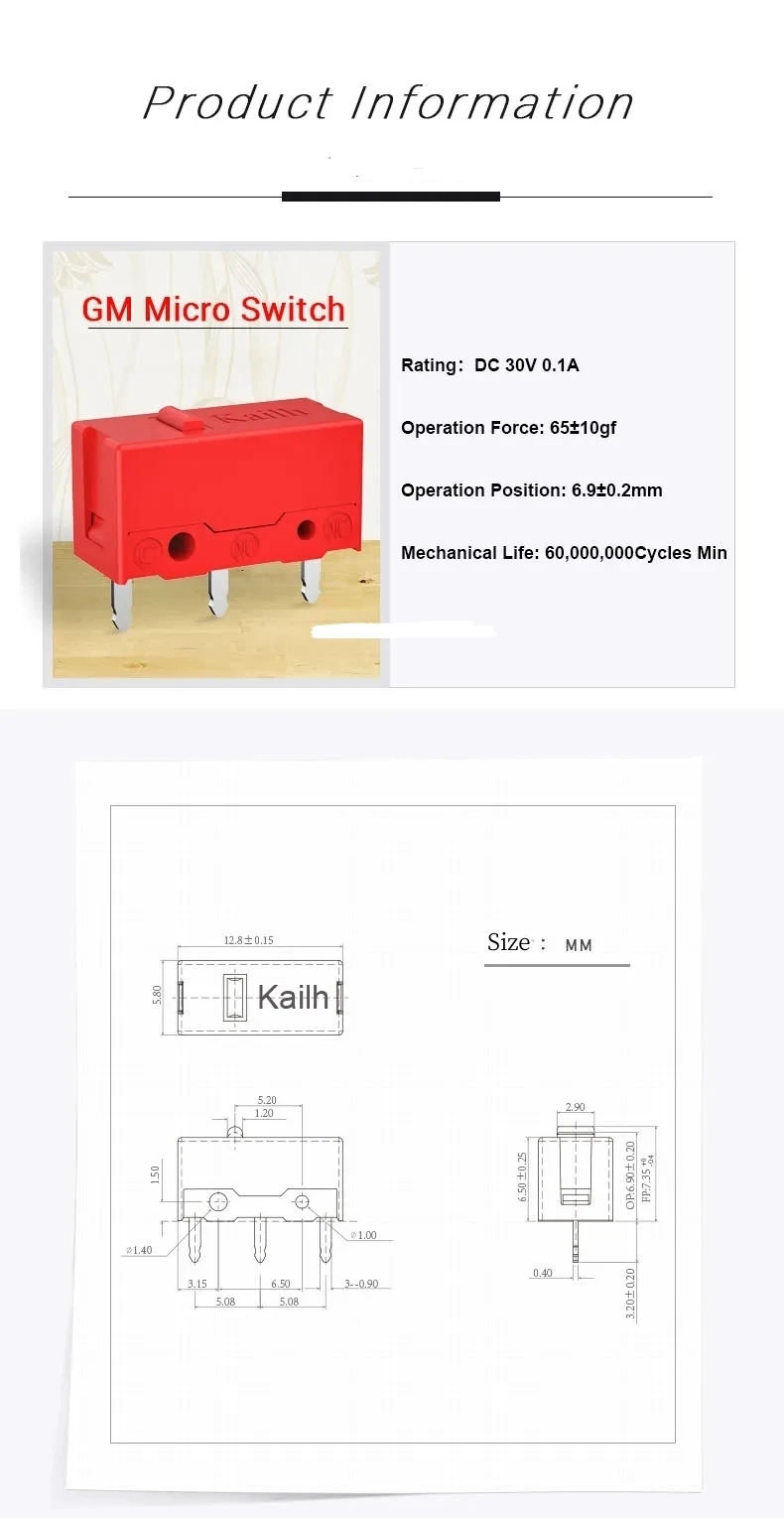 1 Uds Kailh Micro interruptor GM4.0 60M Life Gaming Mouse Micro interruptor 3 pines punto rojo utilizado en ratones de ordenador botón izquierdo derecho