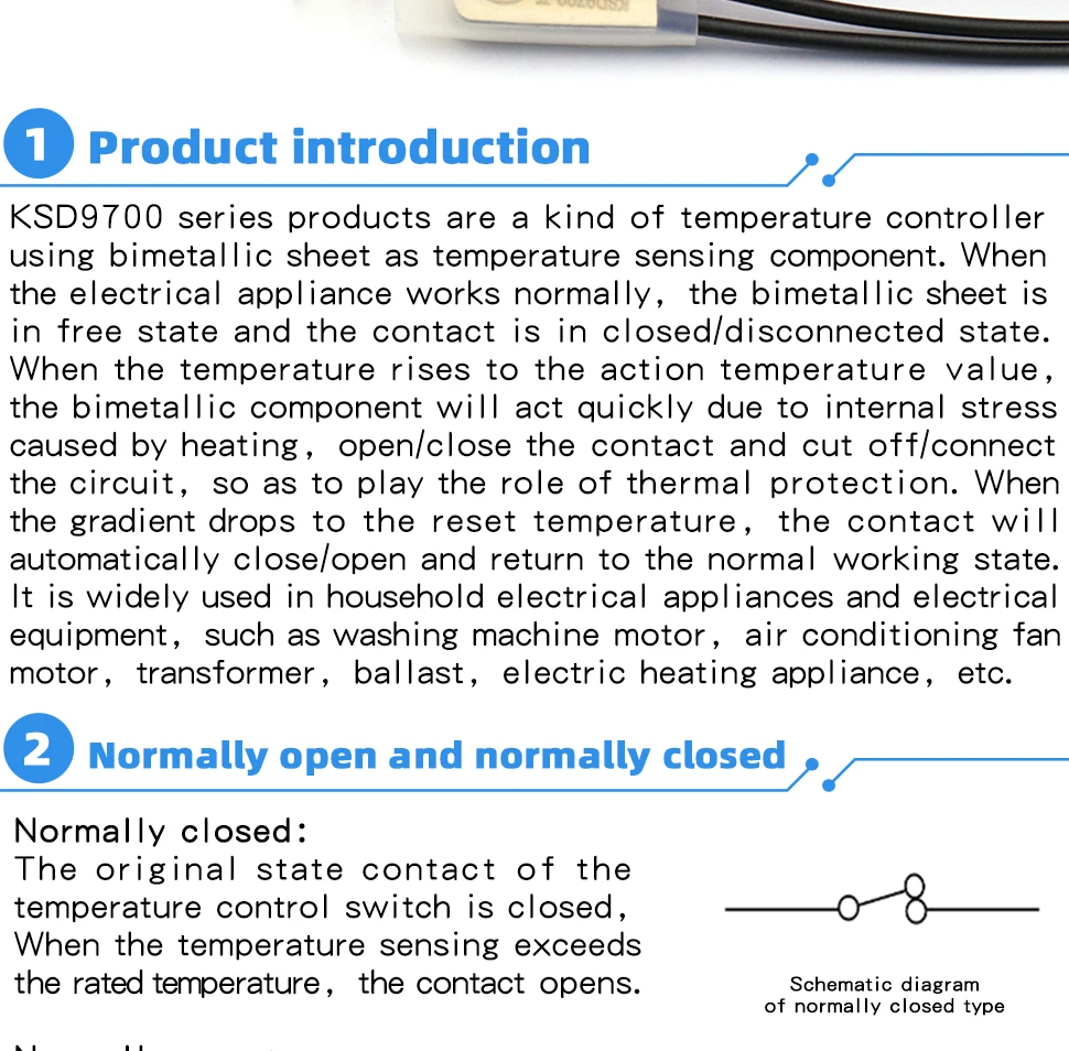 1 Uds KSD9700 250V 5A termostato Protector térmico fusibles interruptor de temperatura Control térmico 85 90 95 100 105 110 120 125 grados