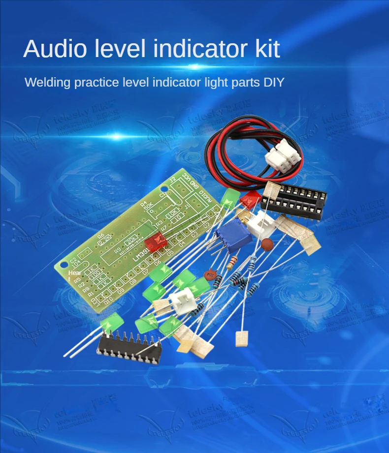1 Uds LM3915 10 LED analizador de espectro de Audio de sonido Kit de indicador de nivel DIY electoronics juego de práctica de soldadura