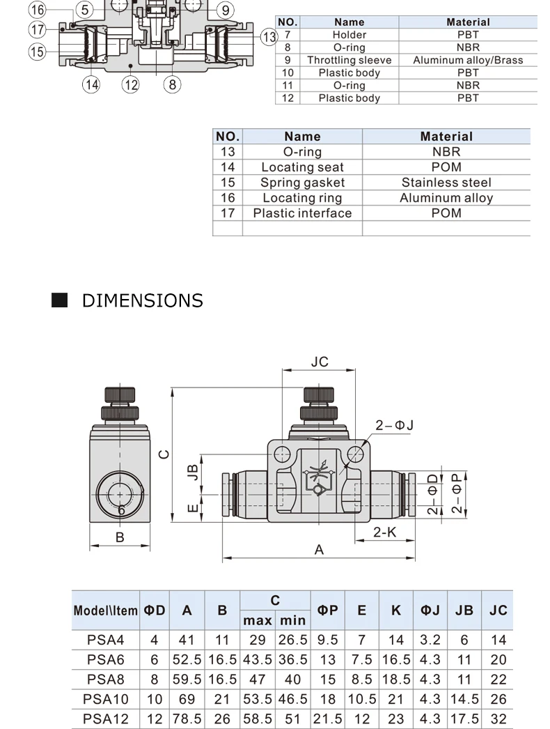 Ajuste para el material del tubo: PU/nailon, poliuretano