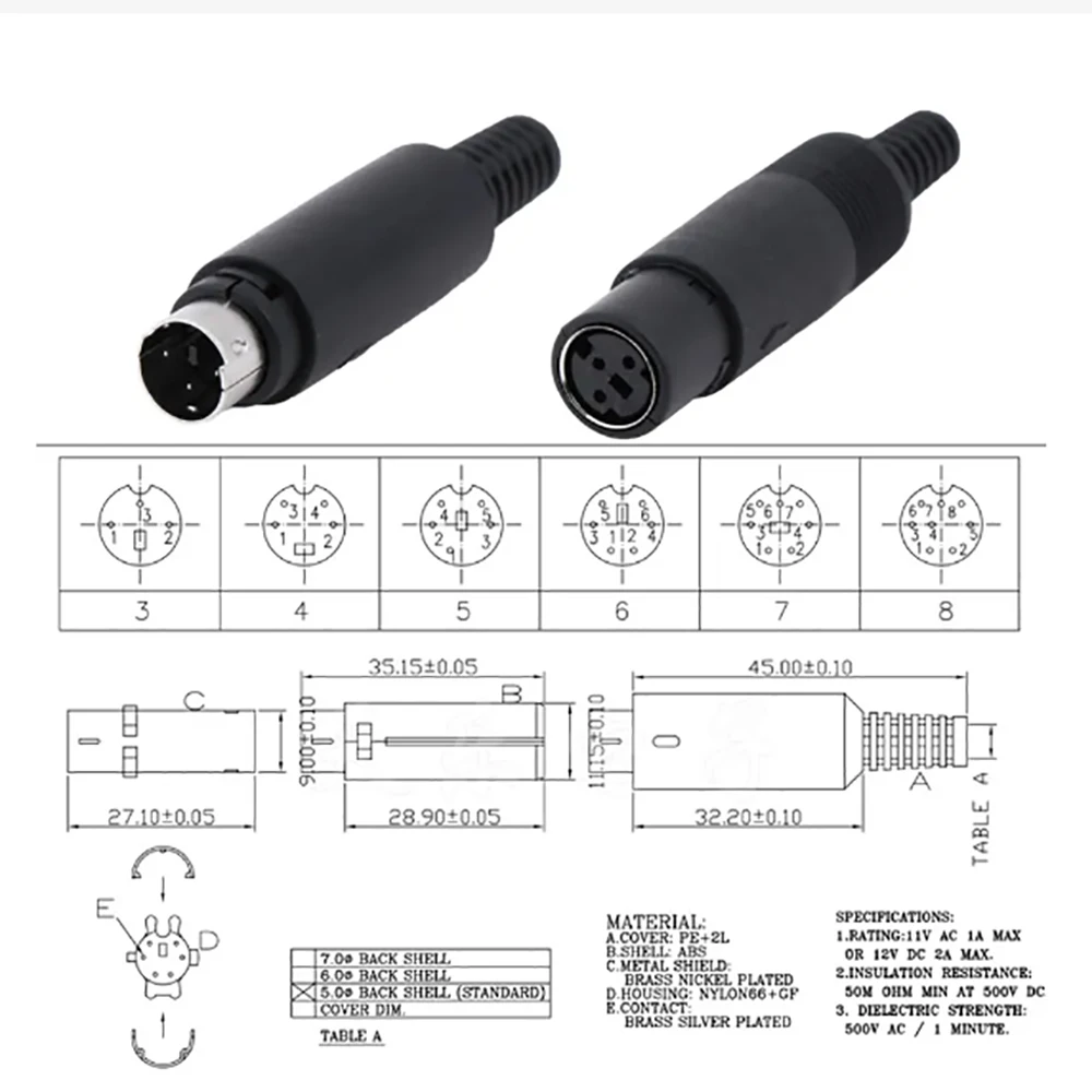 1 Uds Mini enchufe DIN 3/4/5/6/7/8 pines montaje de Cable de chasis enchufe macho hembra 3-8 pines Cable de soldadura Terminal S Mini conector macho PS2