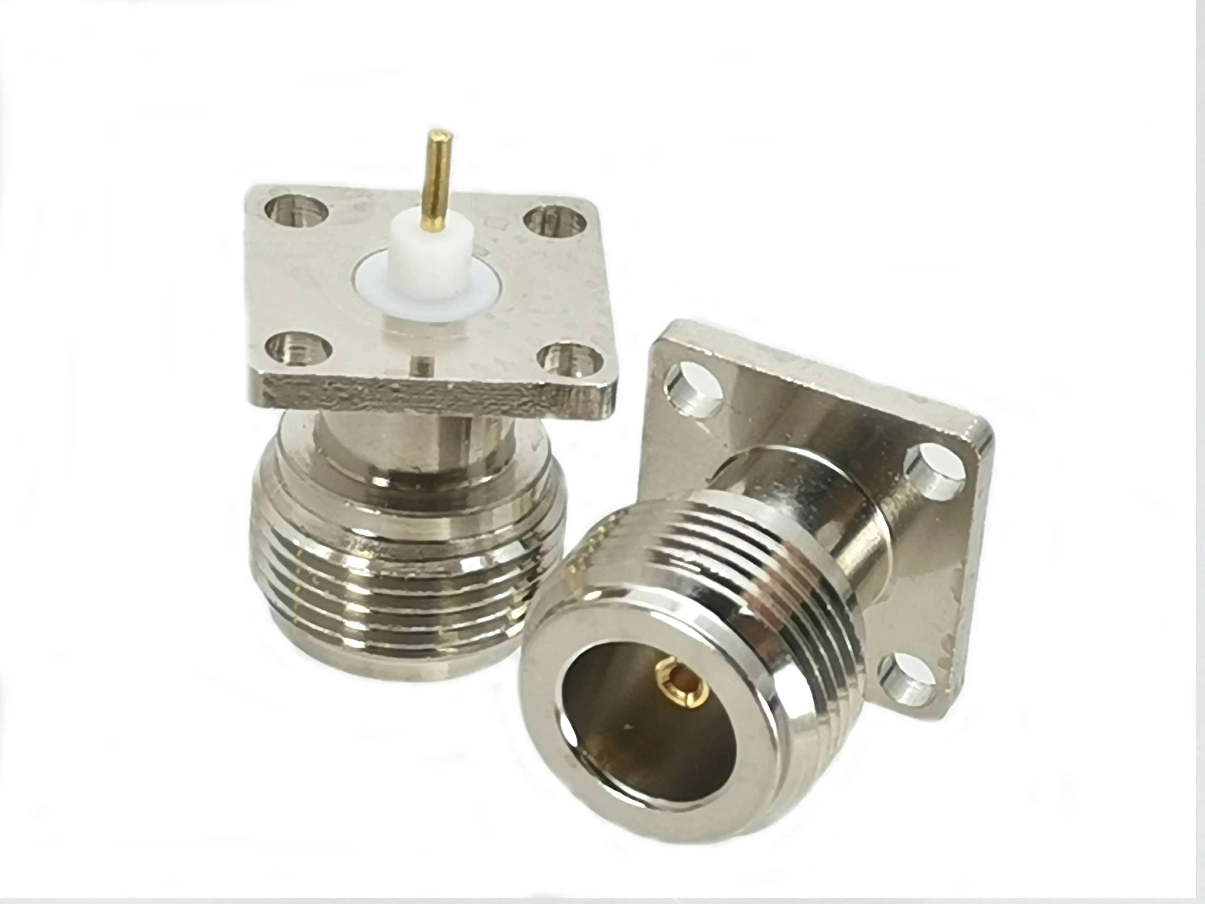 Conector hembra N, brida de 4 agujeros, montaje de Panel de soldadura PTFE, adaptador RF, conector Coaxial recto de alta calidad, 1 Uds.