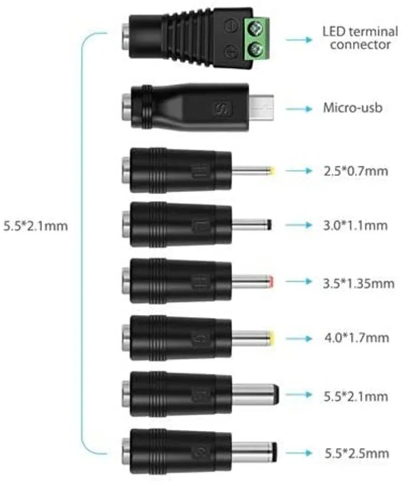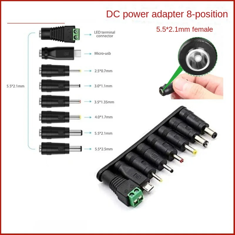 Comprar 1 Uds oferta adaptador de corriente para portátil DC5521 cabeza hembra giratoria juego de 8 piezas DC5.5 * 2,1 MM Universal 5,5*2,5mm