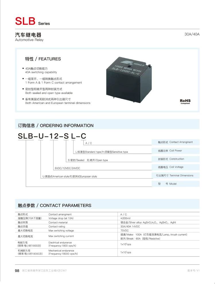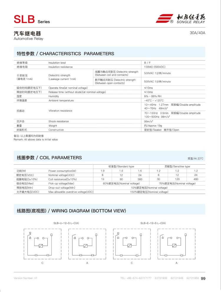 1 Uds relé SONGLE SLB-12VDC-SL-C SLB-24VDC-SL-A -C 6 pines 7 pines 40A 12V 24V relé automotriz