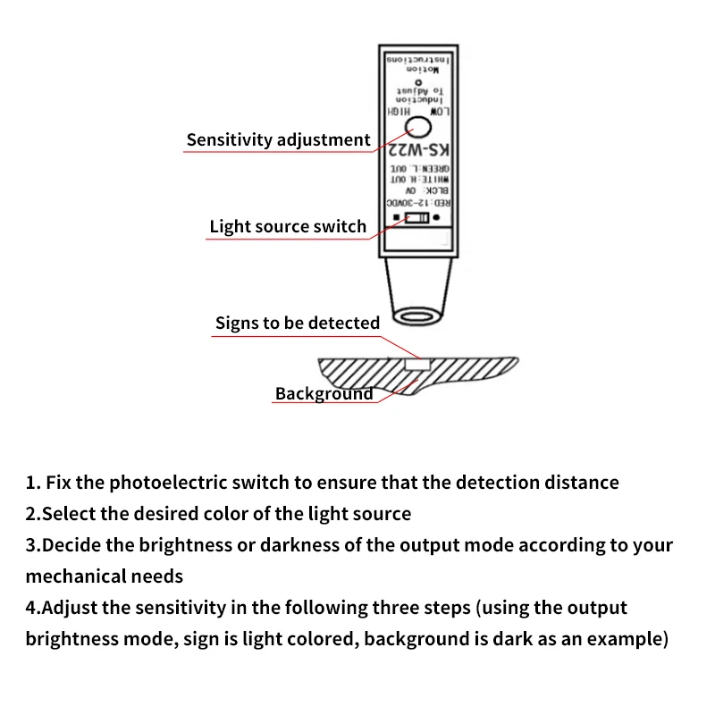 Comprar 1 Uds sensor de código de Color KS-W22-R22-RG22-W22T-WG22 10-30V detección interruptor fotoeléctrico marca de color reconocimiento de color automático