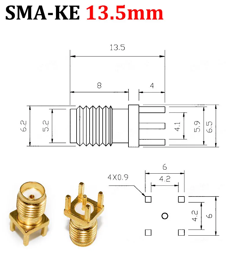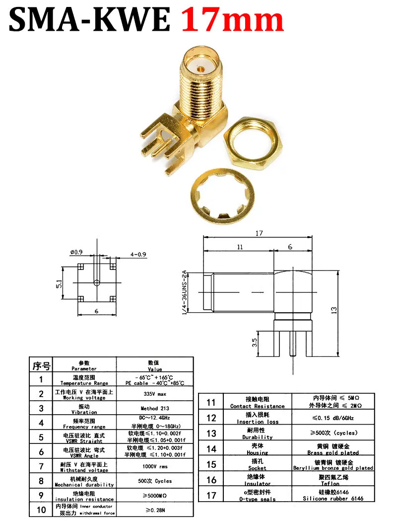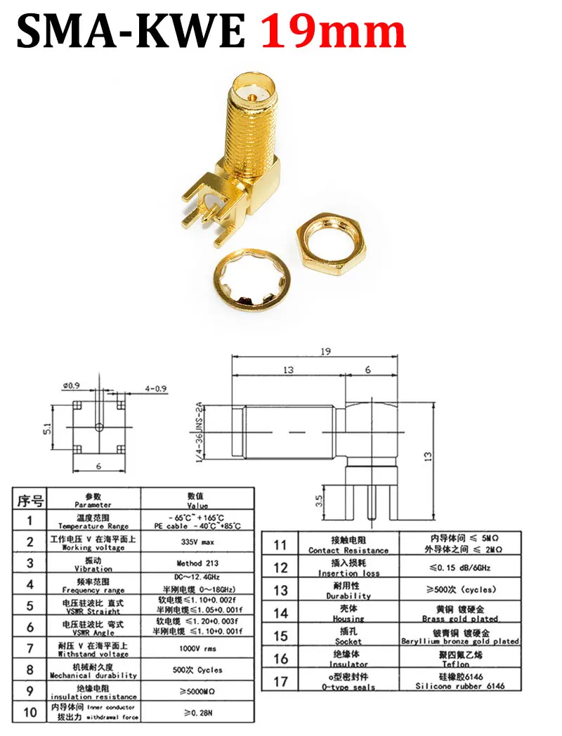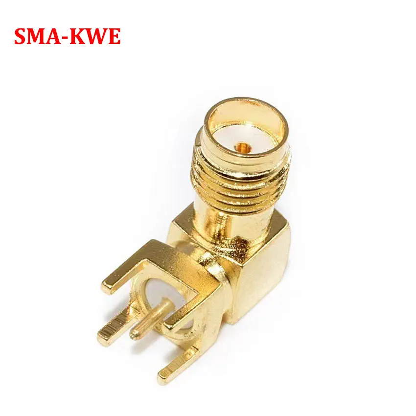 Comprar 1 Uds SMA-KWE/KHD conector hembra macho adaptador de enchufe borde de soldadura PCB montaje en ángulo recto conector Coaxial de antena RF