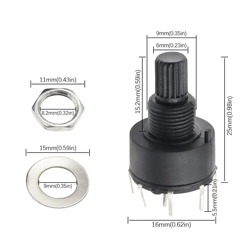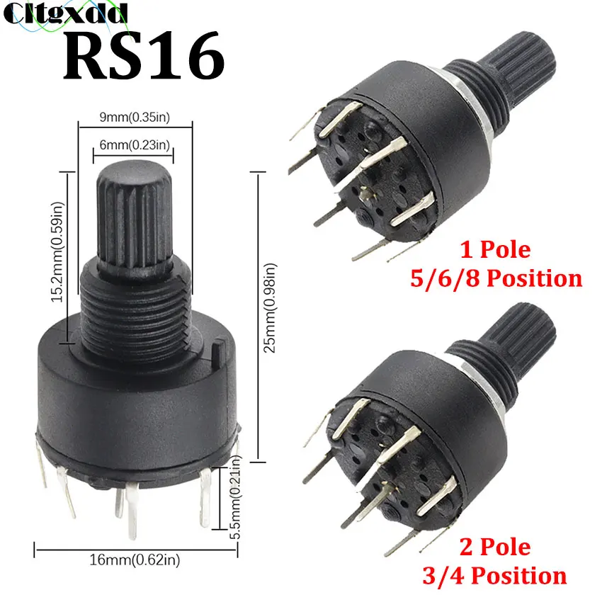 Comprar 1 Uds SR16 16mm interruptor giratorio 1 polo 3/4/5/6/8 posición 2 polos 3/4 posición longitud de la manija 15MM eje flor interruptor de banda
