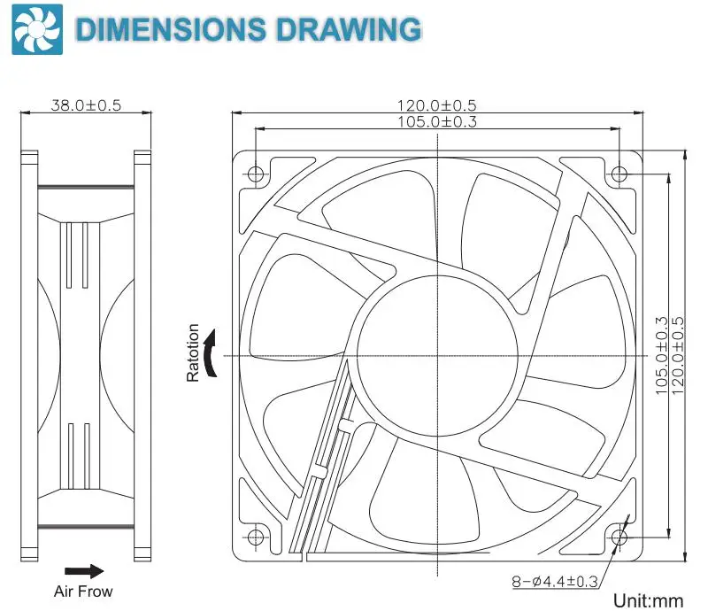 Ventilador de refrigeración CC 12V/24V 120MMX38MM