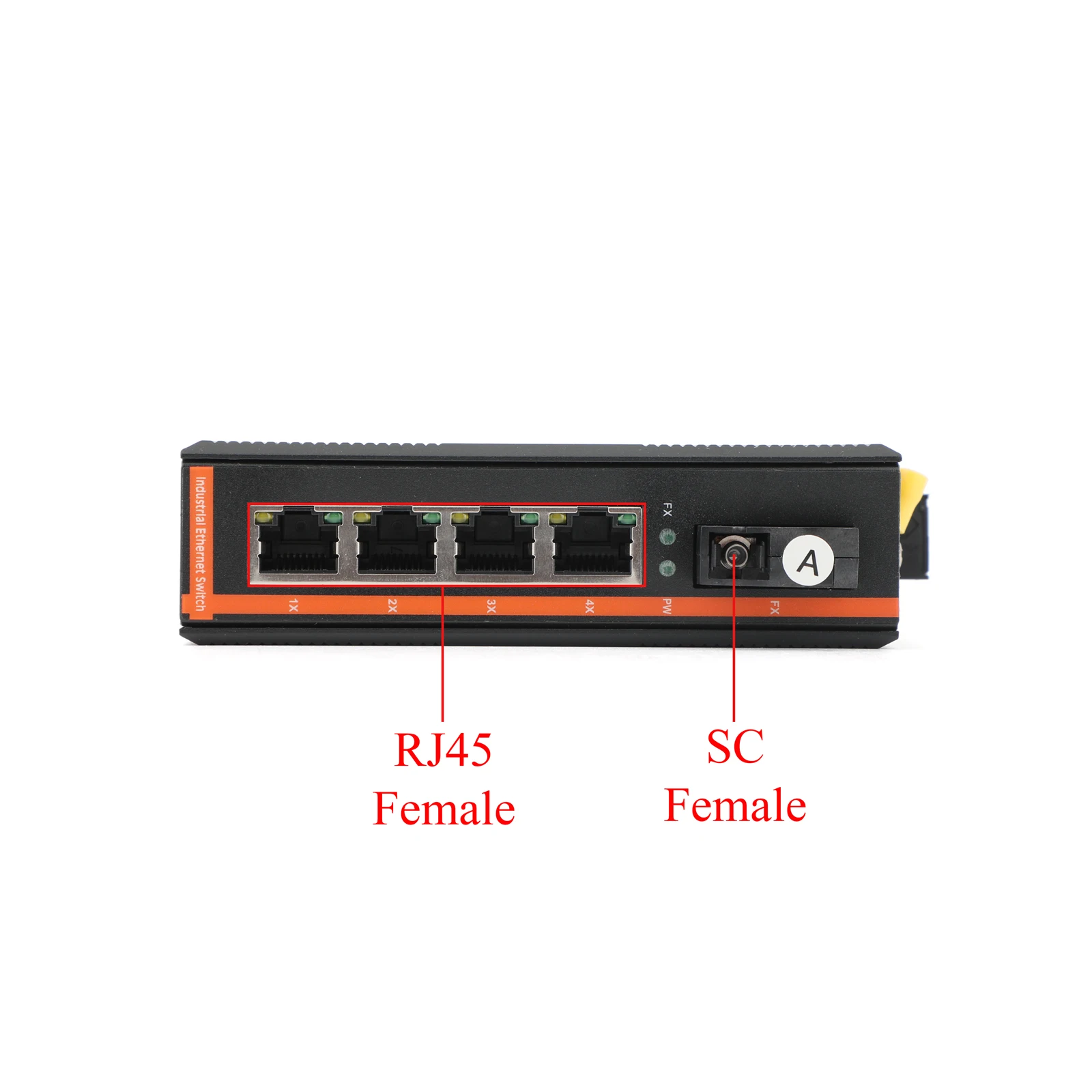 A end (transmitter): 1×SC optical port (1310nm transmit/1550nm receive) + 4×RJ45 electrical port, sold separately, need to be paired with B end.