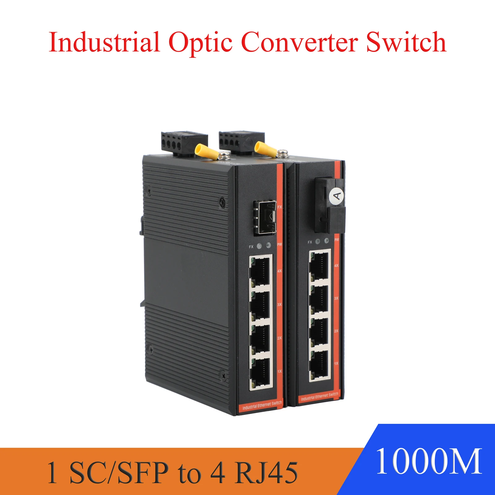 1 PCS Industrial-grade Gigabit 1 Optical 4 Electrical Single-fiber Single-mode SC/SFP Transceiver A end Transceiver