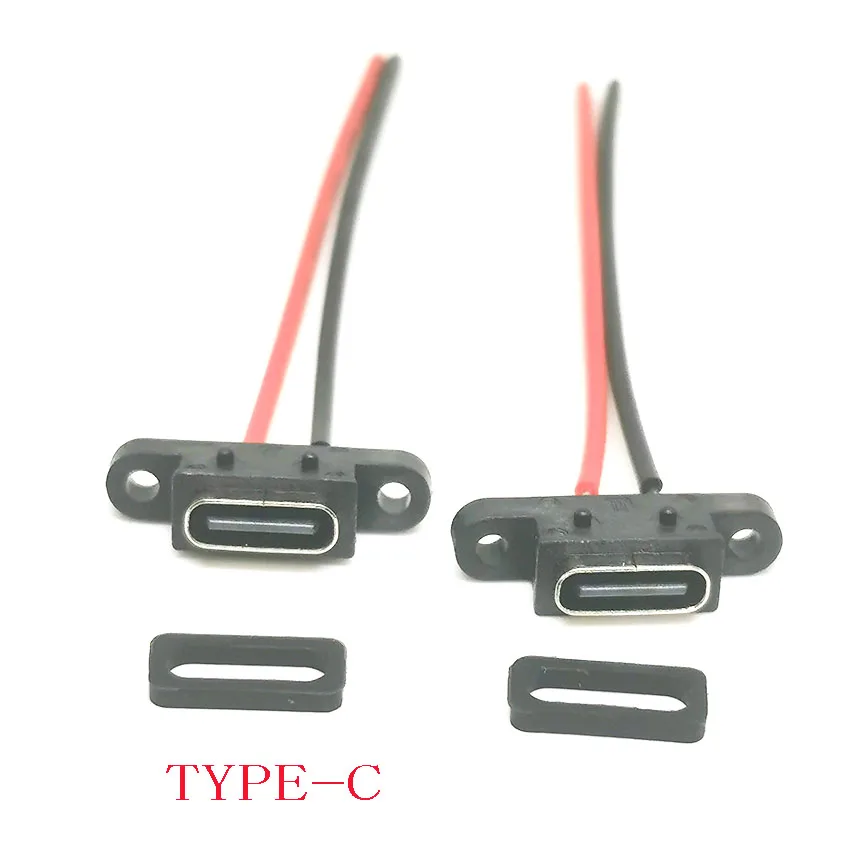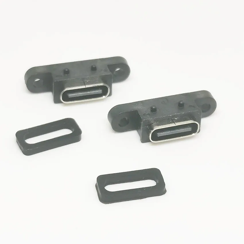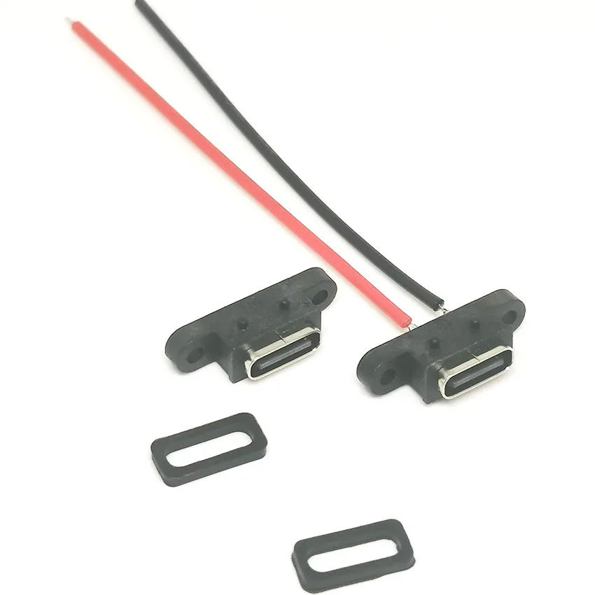 Puerto de enchufe USB C hembra impermeable tipo C de 2 pines con orificio para tornillo interfaz de carga rápida conector USB de 180 grados