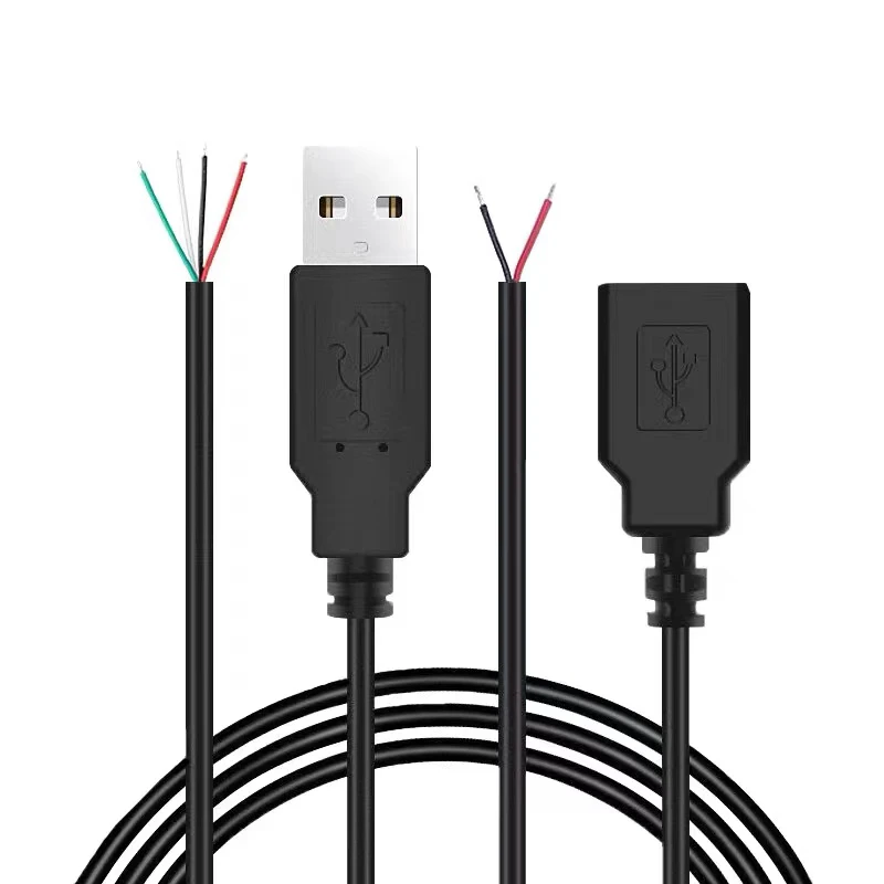 1 Uds USB único macho y hembra cobre lleno estañado 2pin 4pin Cable de carga Cable de datos Cable de extensión Cable de conexión