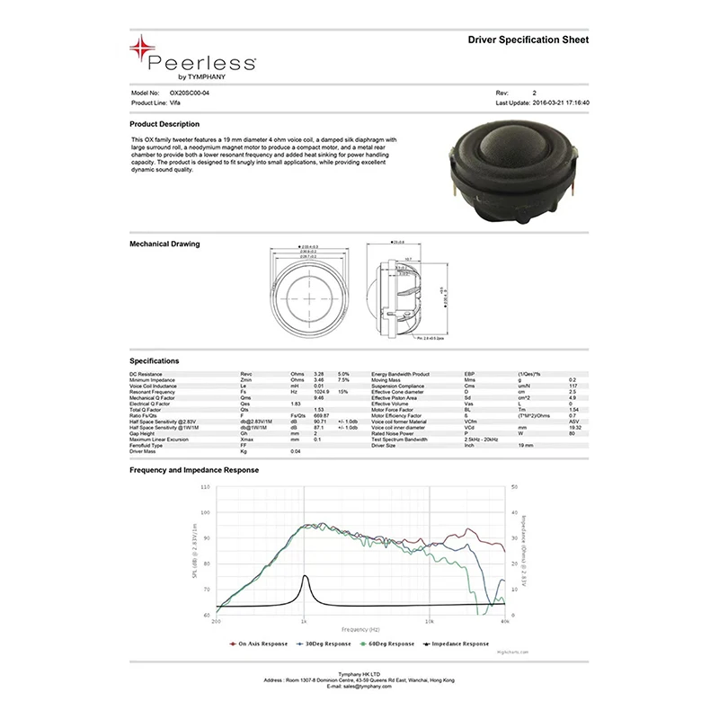 Este tweeter OX famlly presenta un col voico de 19 mm de diámetro y 4 ohmios, un diafragma de seda humedecido con