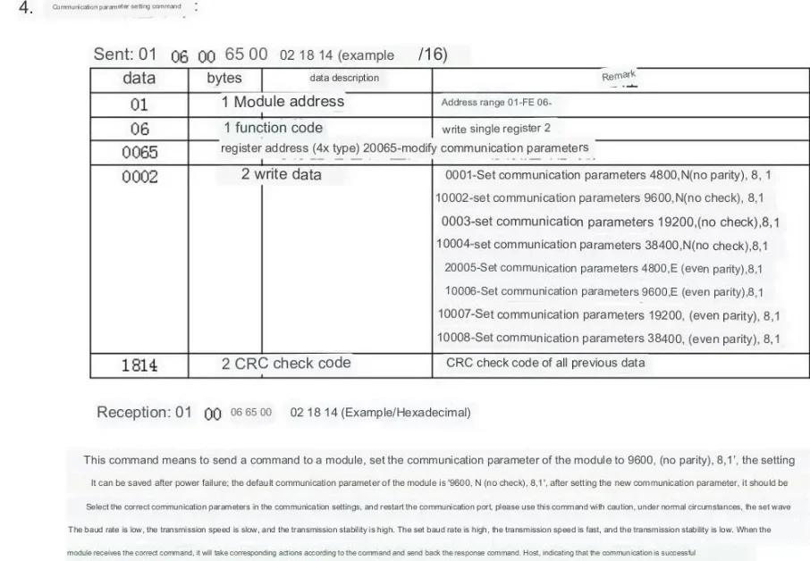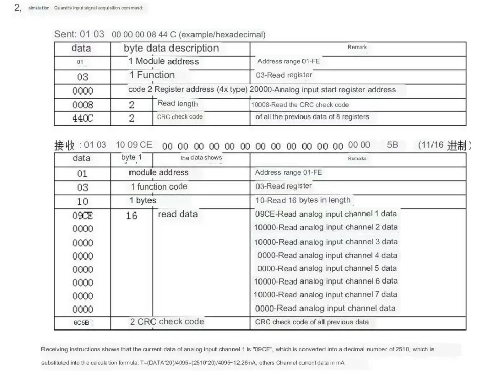 RS485 MODBUS RTU standard communication protocol