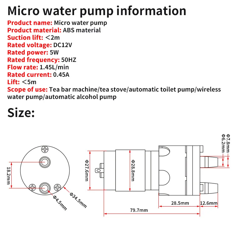 Comprar 1 unidad 365 Micro Motor de bomba de agua DC 12V bomba autocebante bomba de diafragma eléctrica silenciosa gran flujo 1.45L/Min ABS grado alimenticio