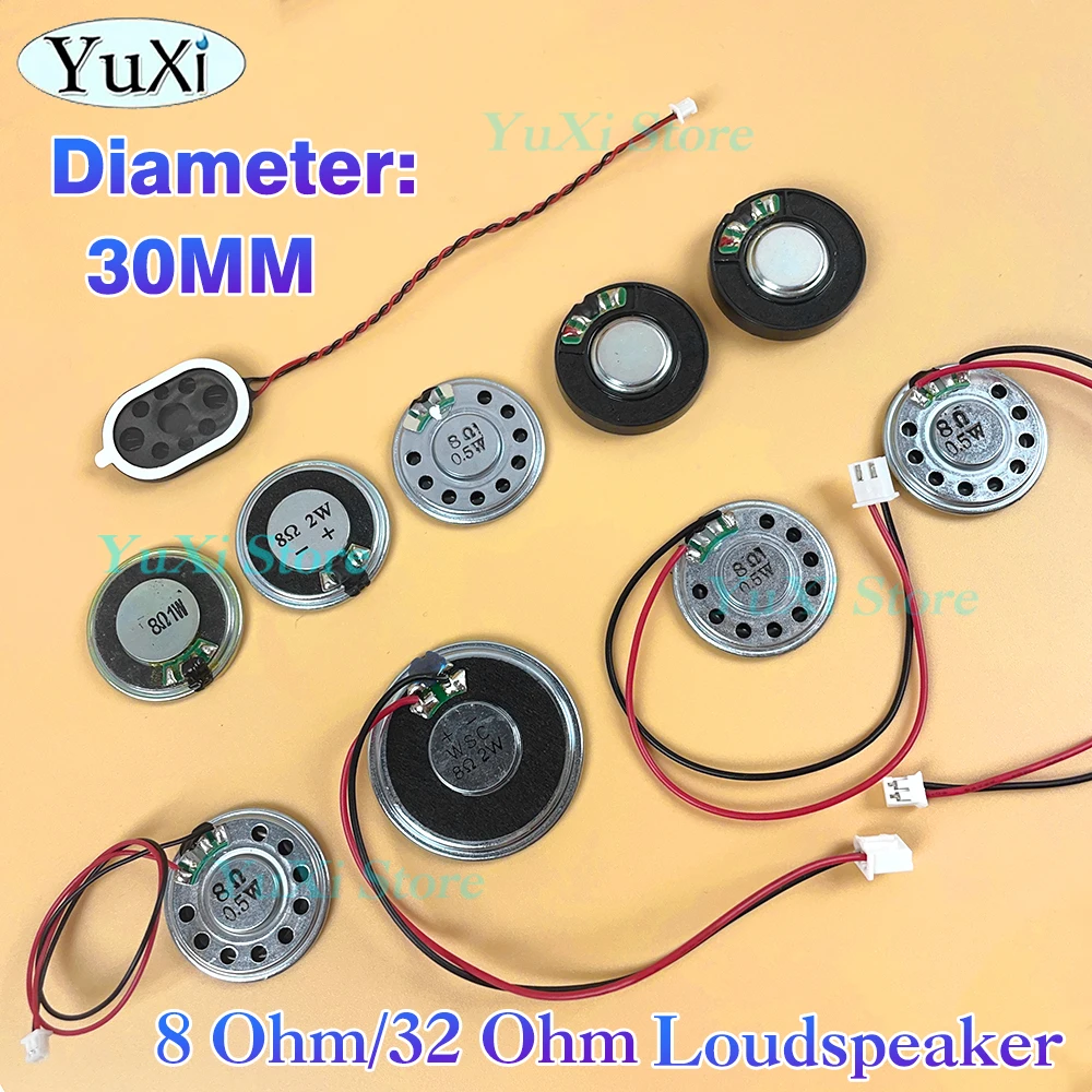 Comprar 1 unidad 8 Ohm 0,5 W 1W 2W bocina altavoz diámetro 30MM bocina de coche auriculares HIFI altavoz de rango completo 32 Ohm Audio redondo