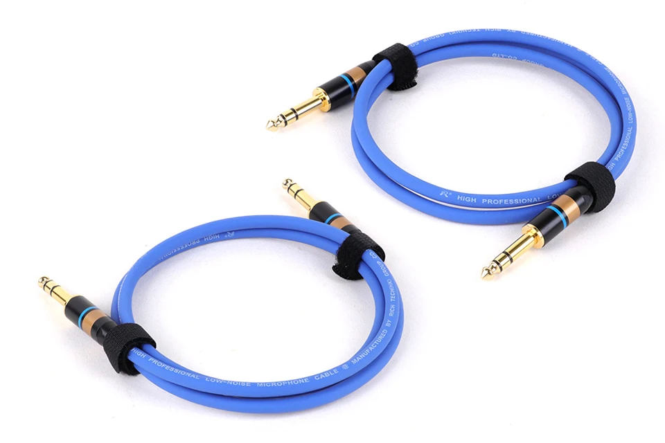 Conector estéreo macho de 5,6,35 mm a macho estéreo de 6,35 mm con conectores coloridos + chapados en plata que brindan un sonido nítido y superior de la línea.
