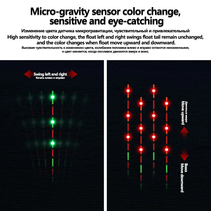 Características:2. La cola es un sensor de gravedad, que puede cambiar de color de verde a rojo cuando el anzuelo morde el pez.