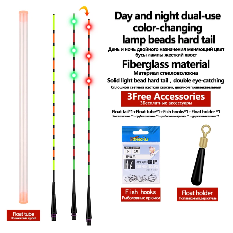 Cola flotante con Sensor de gravedad LED, 1 tubo flotante, 1 gancho para bolsa, 1 asiento flotante, boya de luz LED fuerte, herramienta luminosa de cola de cambio de Color, 1 ud.