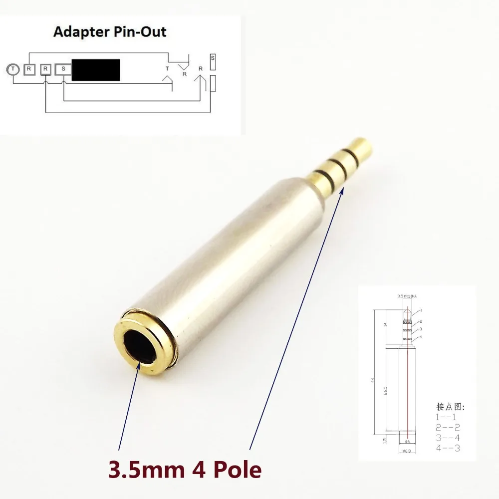 Comprar 1 unidad de conector macho de 4 polos de 3,5mm a conector hembra de 3,5mm 1/8 "auriculares de Audio estéreo TRRS adaptador convertidor macho a hembra