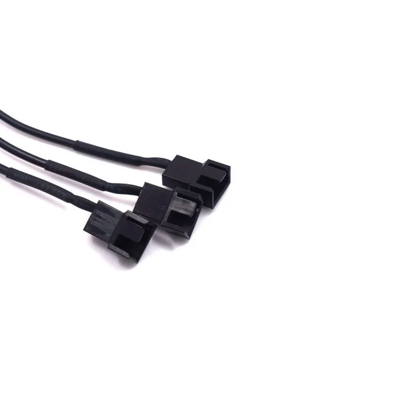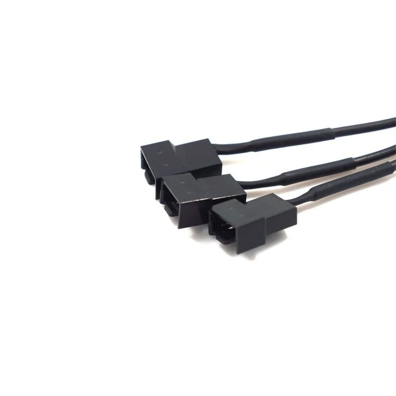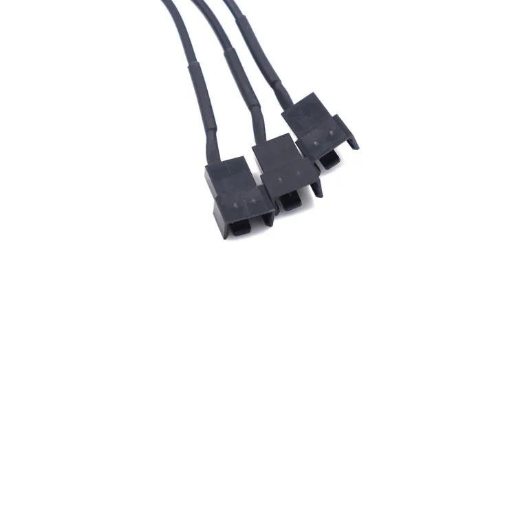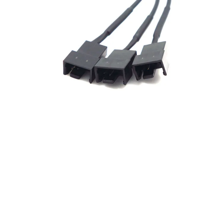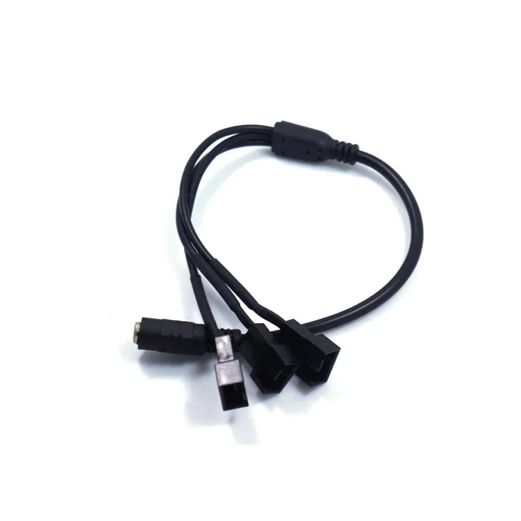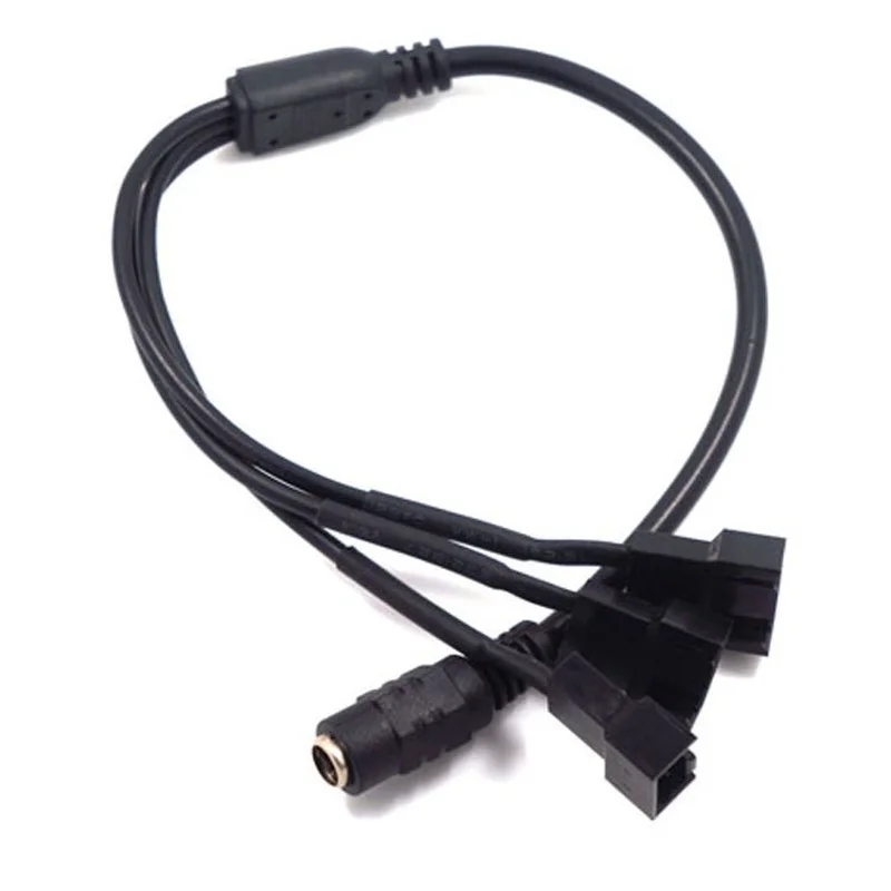 Características: Longitud del cable: Longitud total 35cm, longitud principal 20cm, longitud de la rama 15cm. Material del aislamiento: aislamiento de PVC Especificación del Conductor: línea principal rama 22AWG17 0,12, línea de rama 24AWG11 0,12. Material del Conductor: cobre puro Diámetro del cable: od4.5 mm principal, rama od3.0 mm Temperatura nominal: 80 °C Color de alambre de color: negro Peso: 20g Interfaz: 1 x conector DC5521, 3x ventilador de ordenador 4 pines conector Función del producto: cambiar el ventilador de la computadora del Gabinete a la fuente de alimentación de la interfaz de CC.