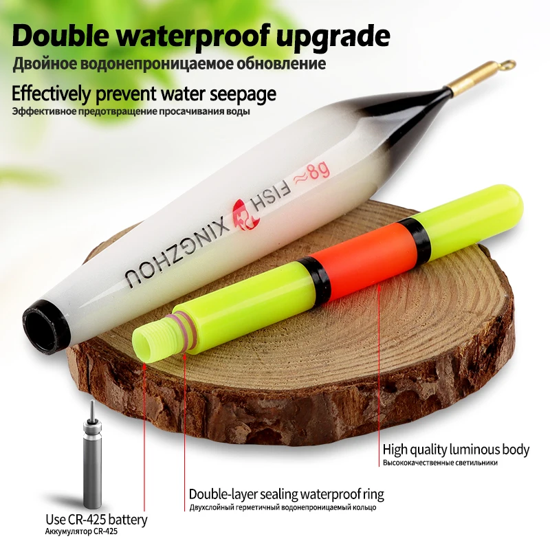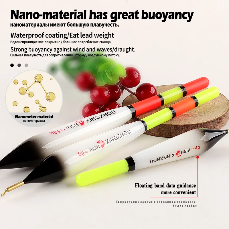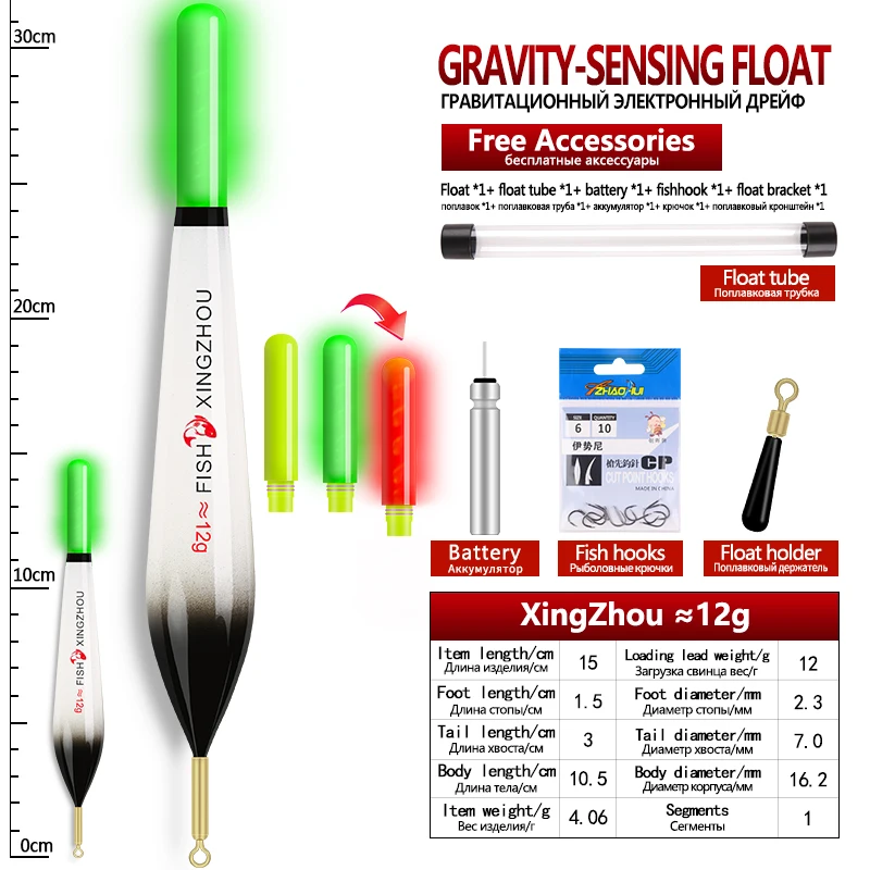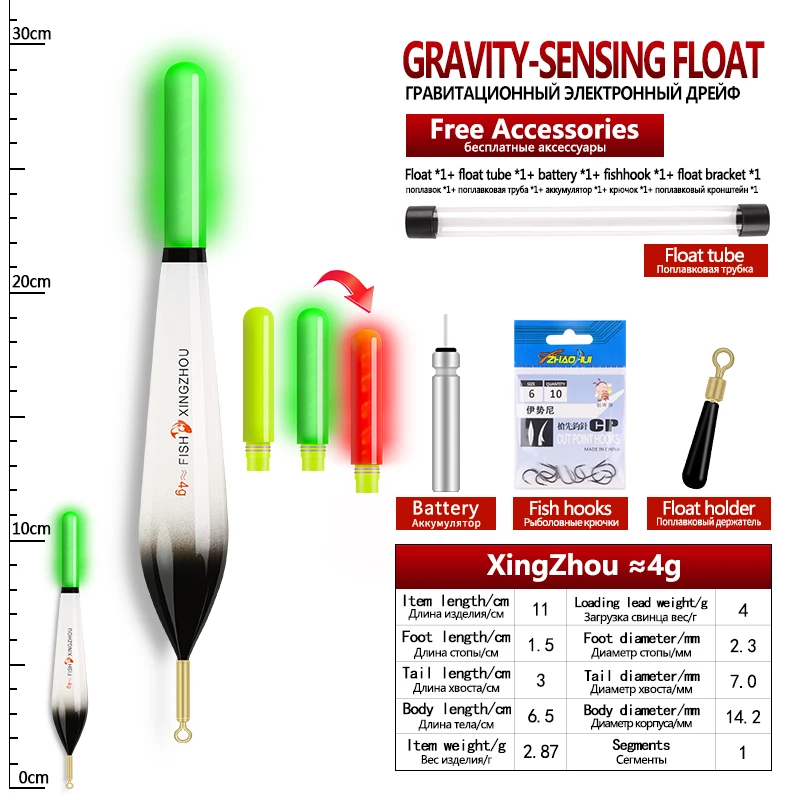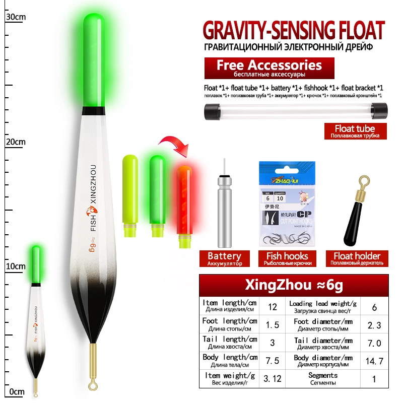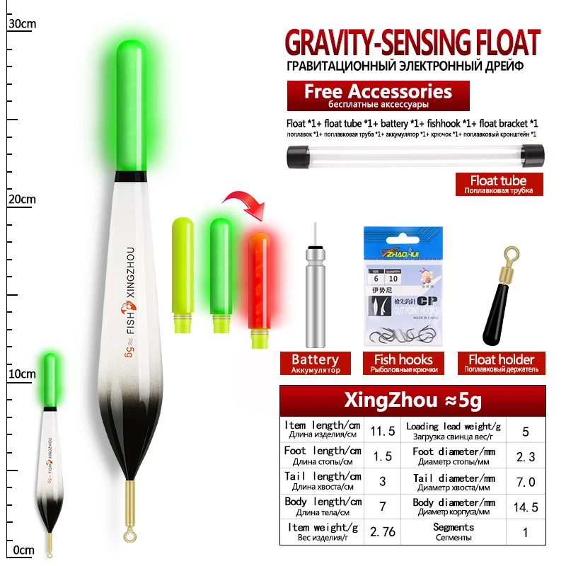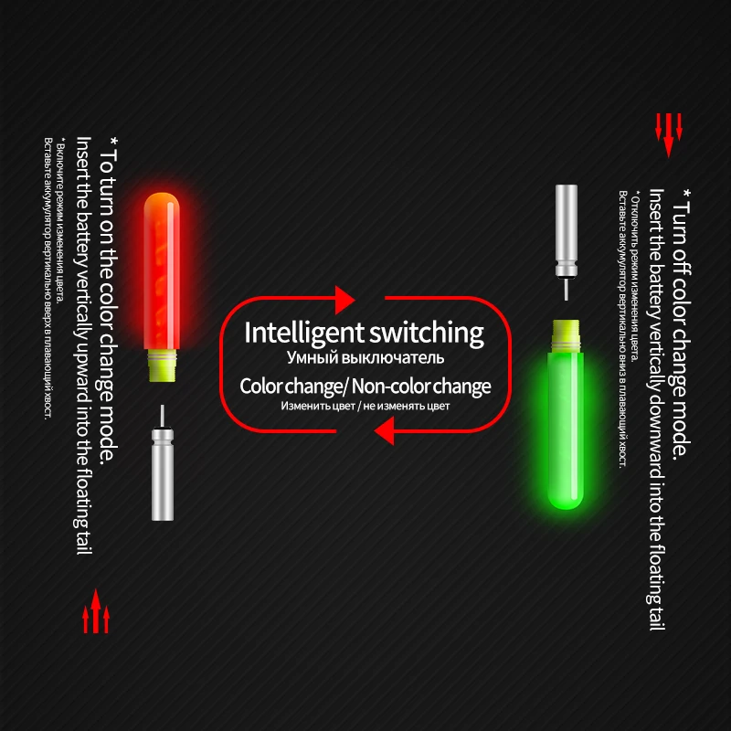 Features:1, The float tail is gravity sensor, which can change color when fish bite the fishing hooks.2, The float is made of high quality Nano material, which make the floats durable for using.